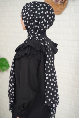 Gömlek Yaka Düğmeli Kaşe Panço Siyah