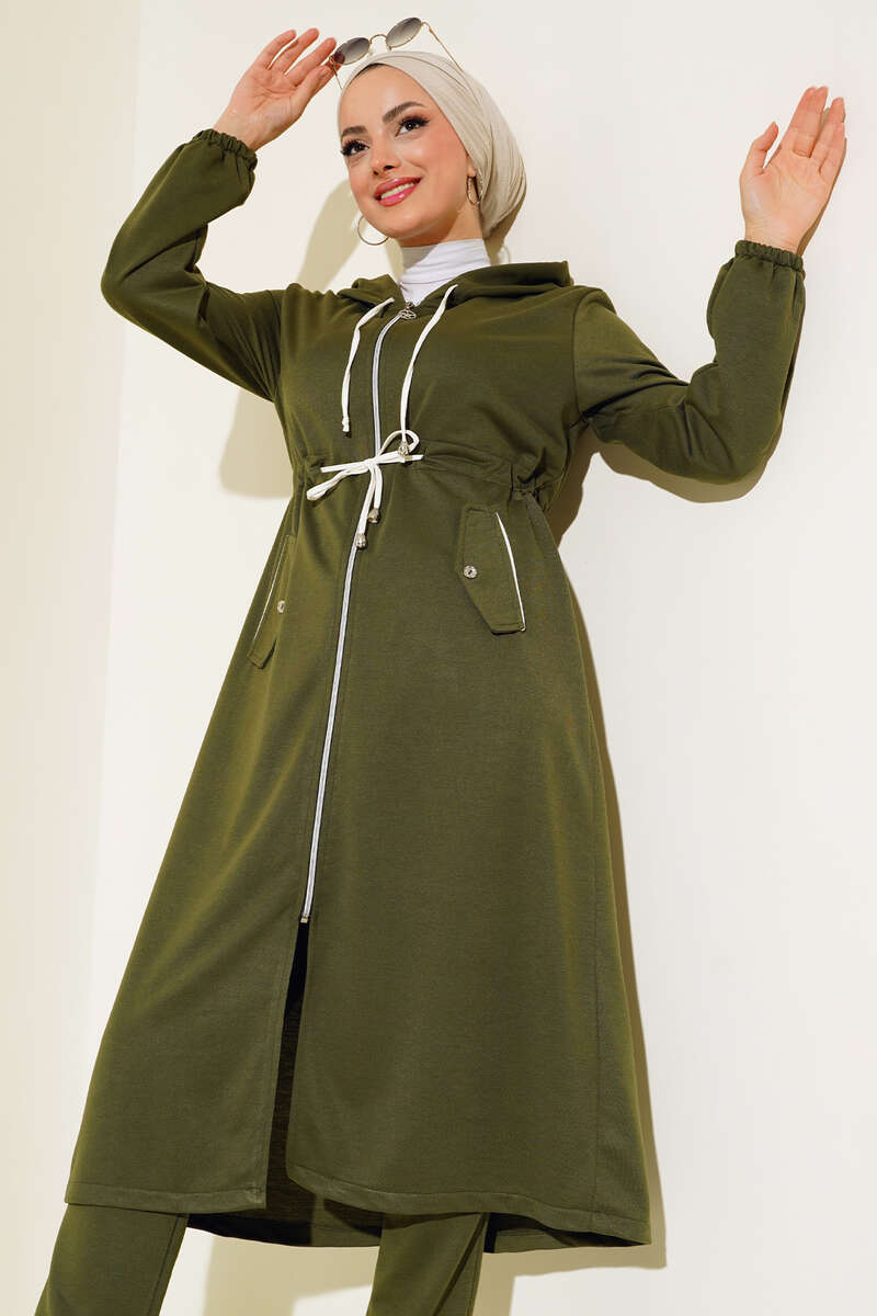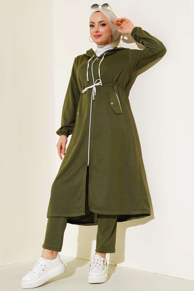 Yeni sezon ikili takım modelimiz sizlerle beraber. Beli tünelli olan tunik modelimizin iki adet cebi bulunmaktadır. Önü boydan fermuarlıdır. Kapüşonludur. Pantolonumuzun beli lastiklidir. Cepsiz modeldir. Renk seçenekleri mevcuttur.