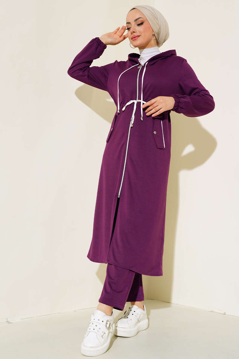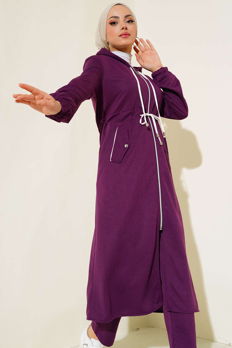 Yeni sezon ikili takım modelimiz sizlerle beraber. Beli tünelli olan tunik modelimizin iki adet cebi bulunmaktadır. Önü boydan fermuarlıdır. Kapüşonludur. Pantolonumuzun beli lastiklidir. Cepsiz modeldir. Renk seçenekleri mevcuttur.
