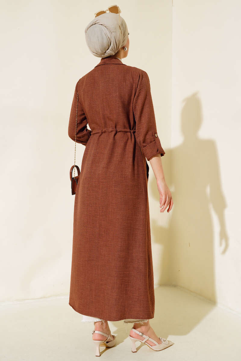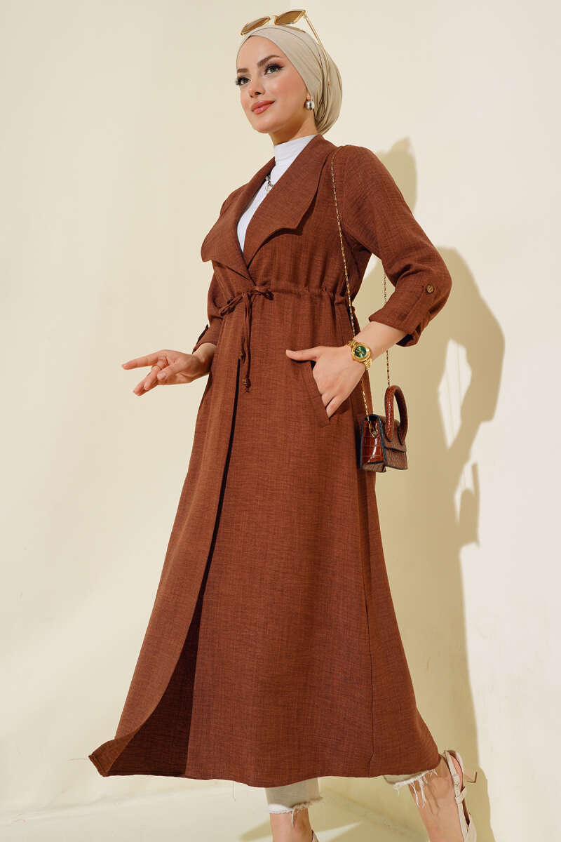 Ürün BilgisiBoy: 128 cmGöğüs: 96 cmBel: 92 cmYeni sezon kap modelimiz sizlerle beraber. Kap modelimiz bel tünelli olup, ip bağcığı bulunmaktadır. İki adet cebi vardır. Kapımızın kolları katlanabilmekte olup, düğmesi mevcuttur. Modern tasarımıyla kombinlerinizin vazgeçilmez parçası olacaktır.Kumaş Bilgisi%100 PolyesterModel BilgisiBoy: 165 cmGöğüs: 86 cmBel: 67 cmKalça: 85 cmModelin üzerindeki ürün - S - bedendir.