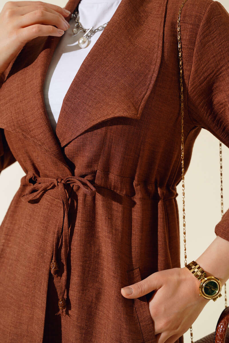 Yeni sezon kap modelimiz sizlerle beraber. Kap modelimiz bel tünelli olup, ip bağcığı bulunmaktadır. İki adet cebi vardır. Kapımızın kolları katlanabilmekte olup, düğmesi mevcuttur. Modern tasarımıyla kombinlerinizin vazgeçilmez parçası olacaktır.