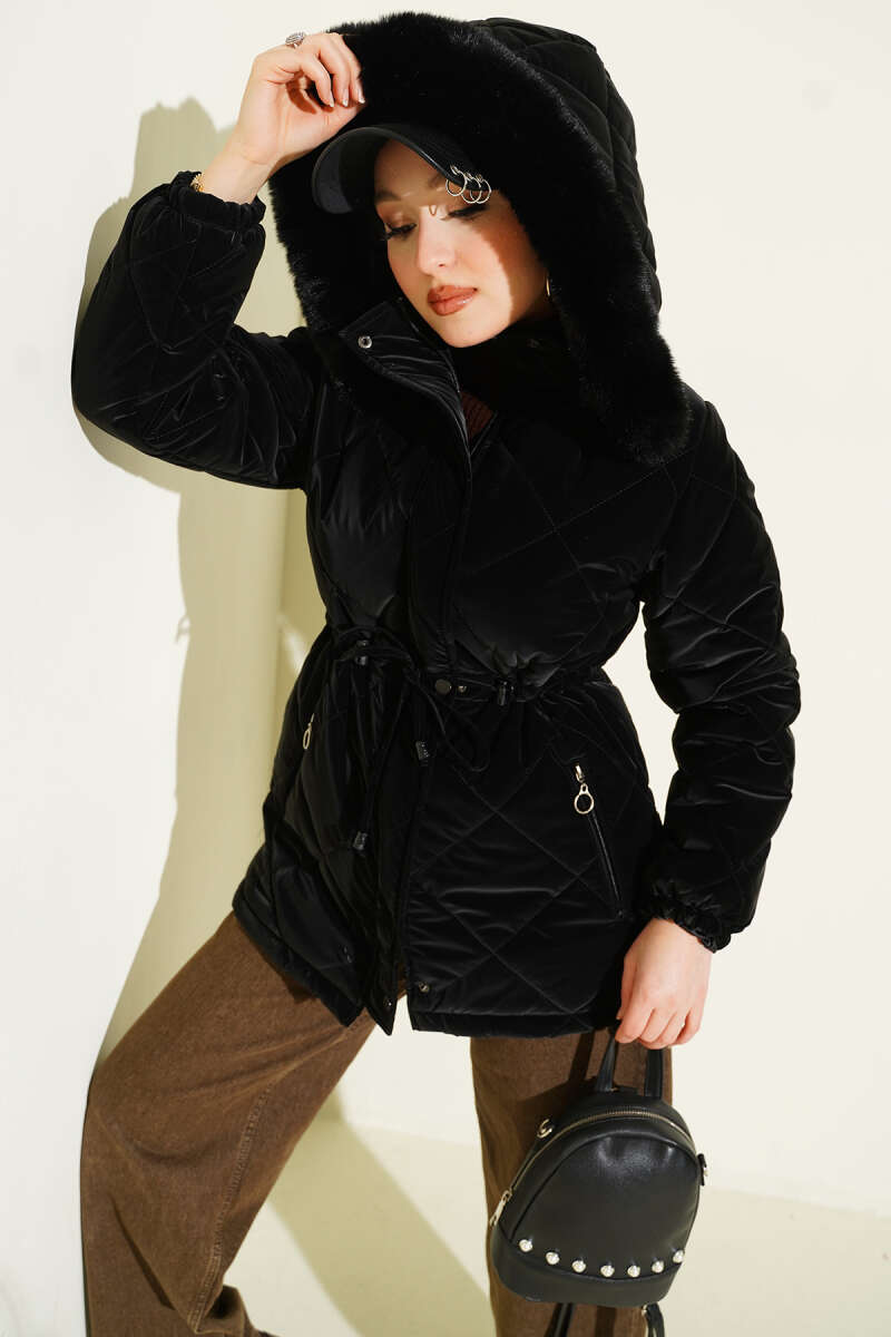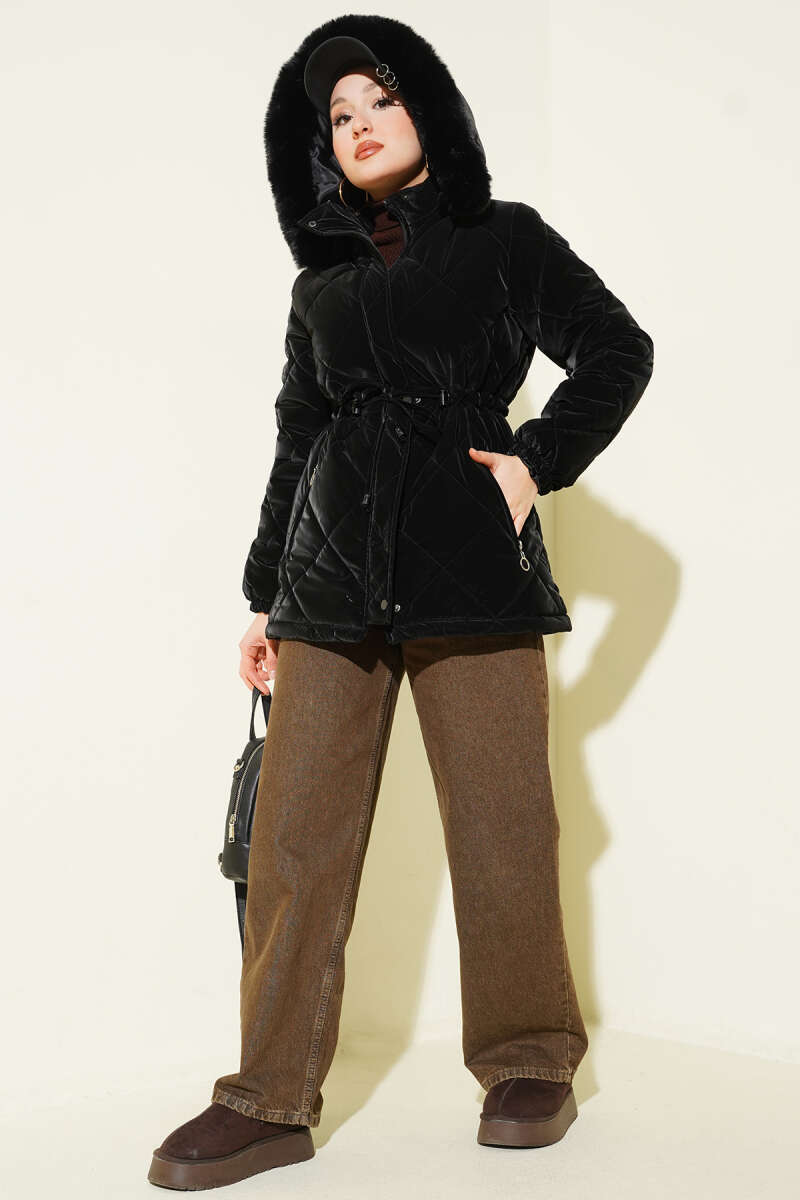 Çıtçıt Düğmeli Kürk Mont Latte