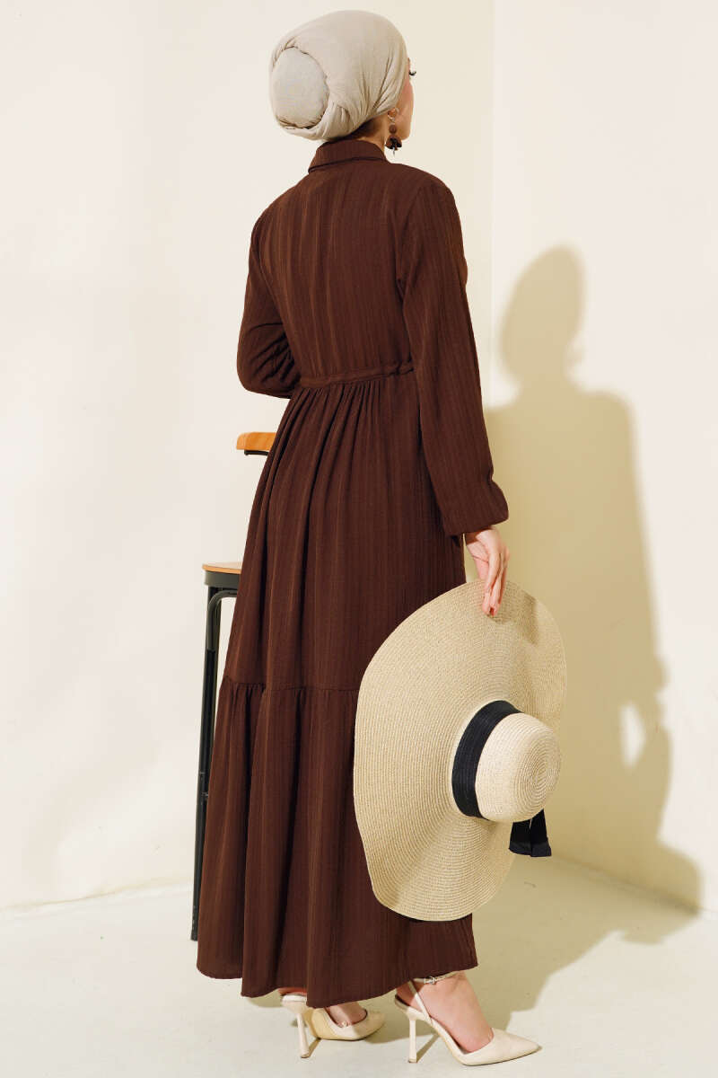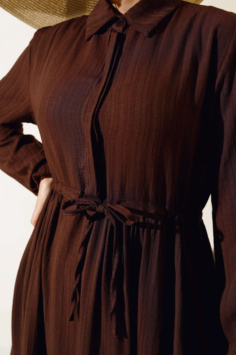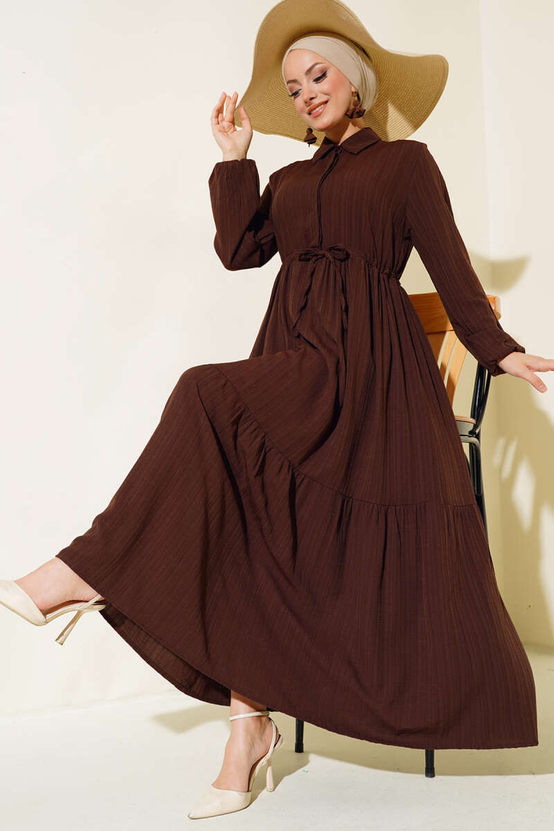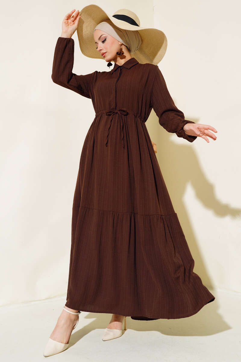 Yeni sezon elbise modelimiz sizlerle beraber. Elbisemizin kol bilekleri lastiklidir.  modeldir.  Astarsızdır. Kendi kumaşından tünelli ip bağcıklıdır. Elbisemiz önü yarım düğmelidir. Renk seçenekleri olan elbise modelimiz dolabınızda yerini beklemektedir.