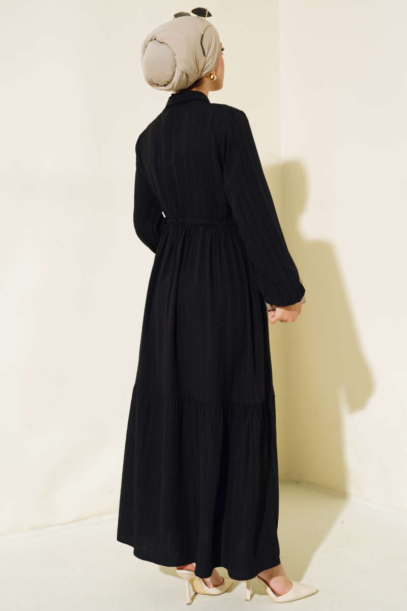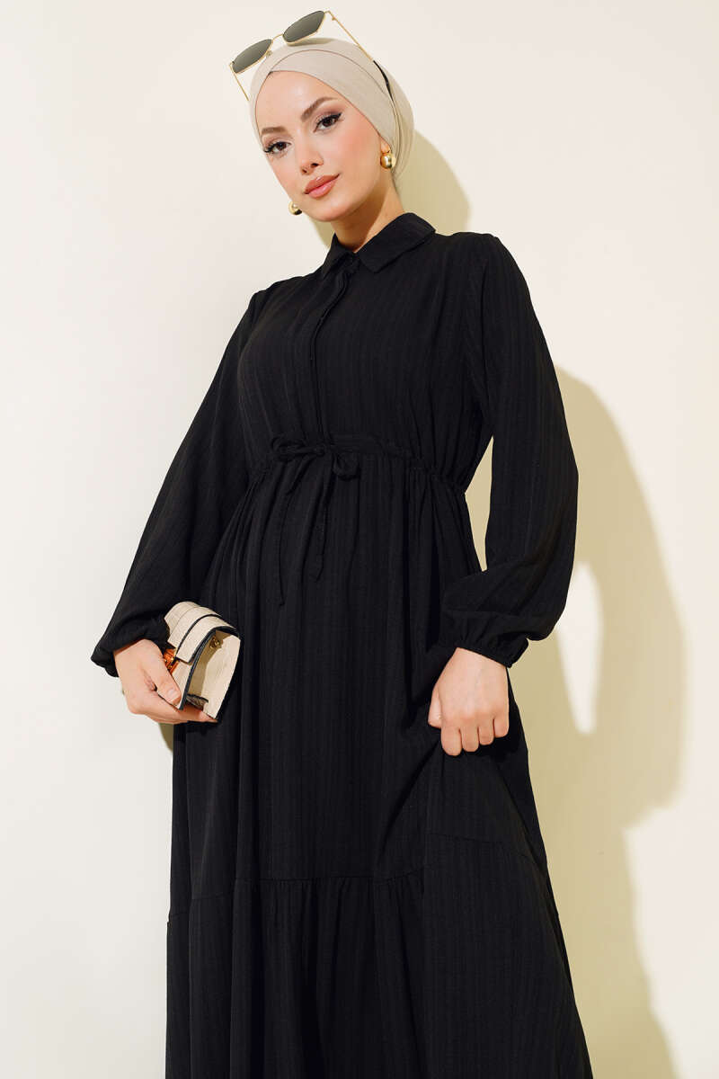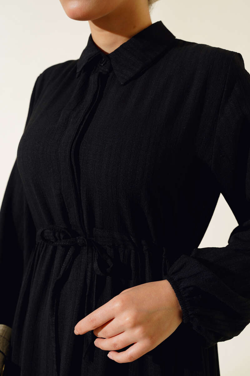 Yeni sezon elbise modelimiz sizlerle beraber. Elbisemizin kol bilekleri lastiklidir.  modeldir.  Astarsızdır. Kendi kumaşından tünelli ip bağcıklıdır. Elbisemiz önü yarım düğmelidir. Renk seçenekleri olan elbise modelimiz dolabınızda yerini beklemektedir.