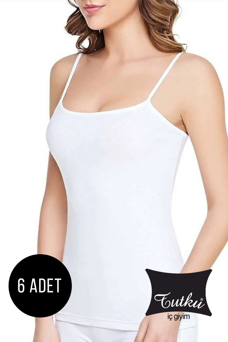 Tutku Bayan 6'lı Ribanalı İp Askılı Atlet Beyaz