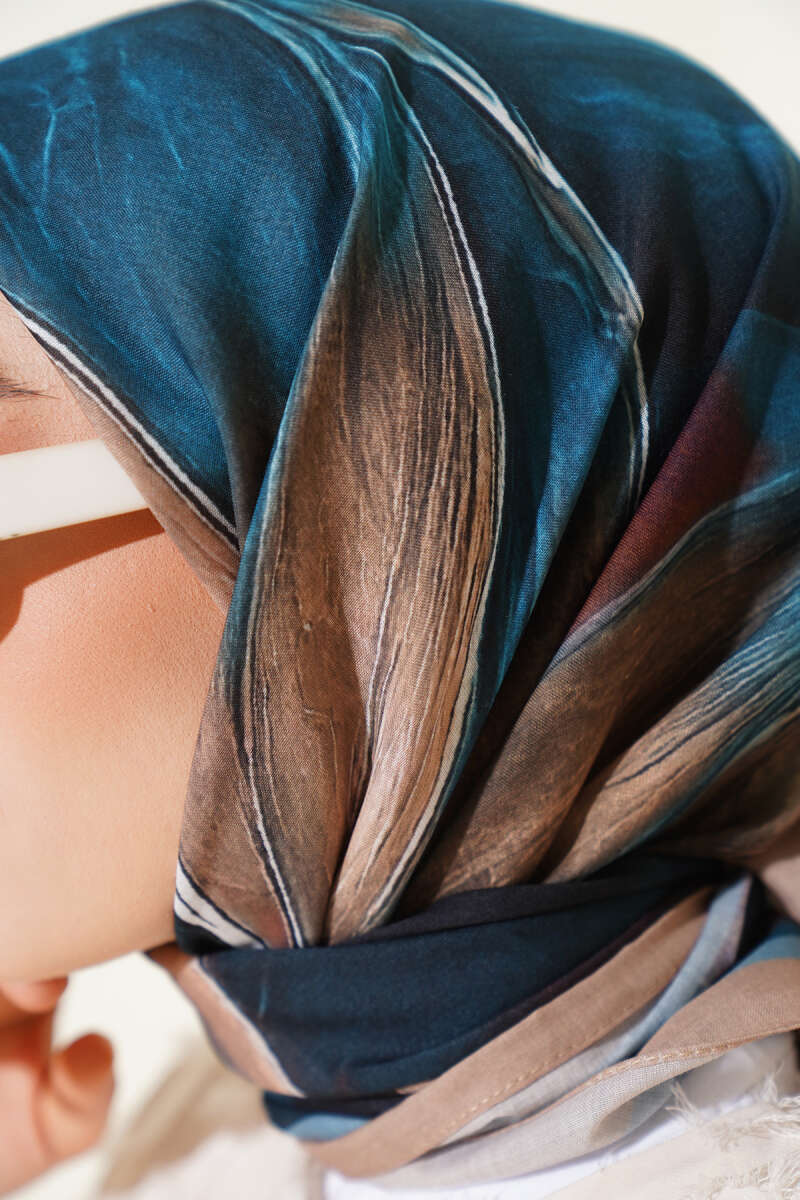 120 cm Sarmal Ebruli Eşarp İndigo
