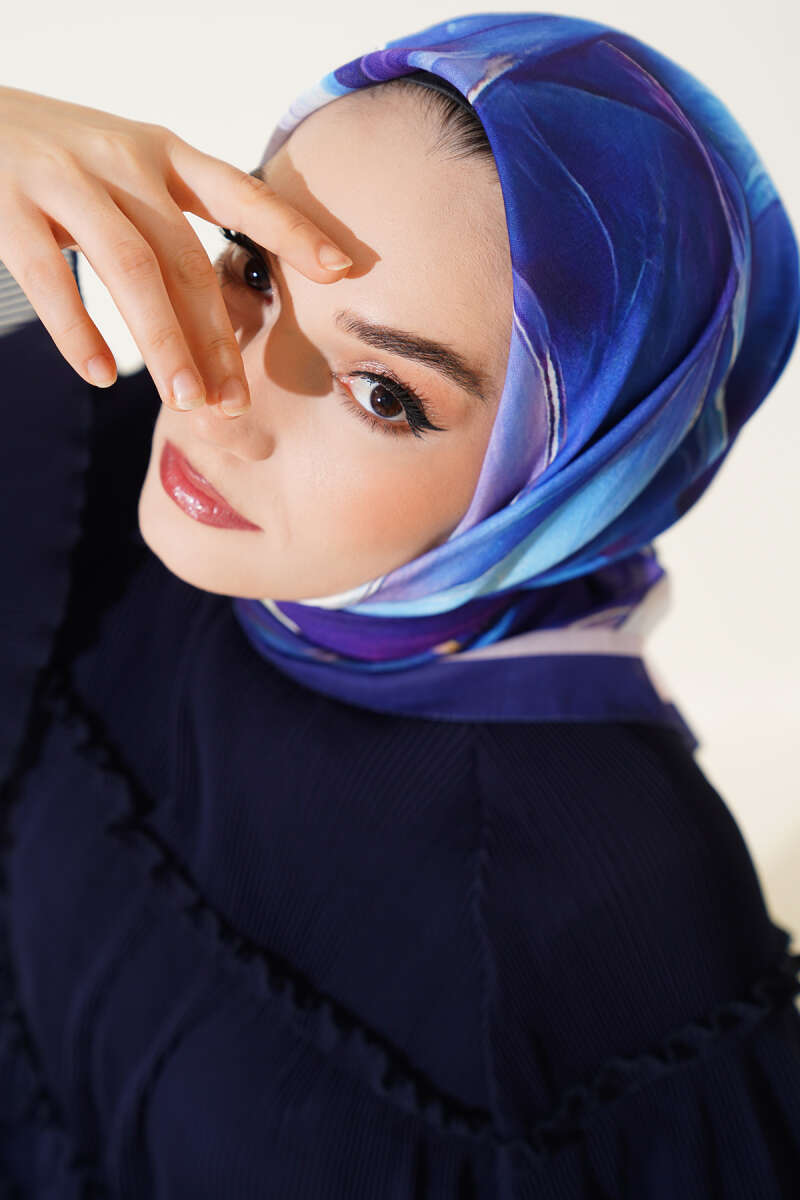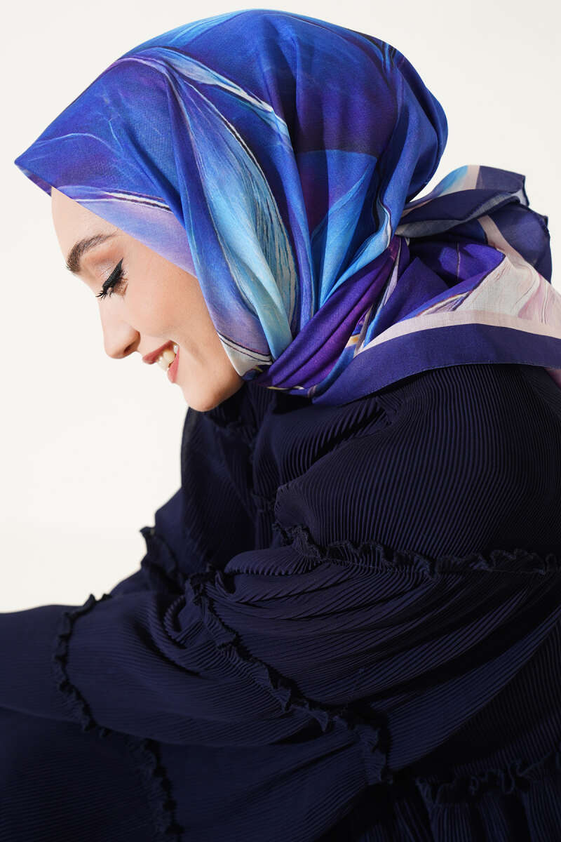 Tuval Desen Eşarp Mor