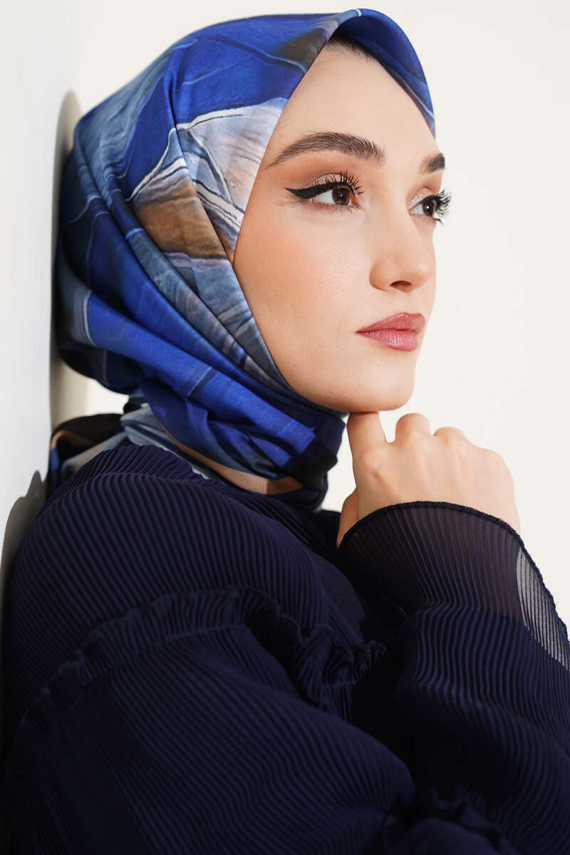 Desenli Soft Lacivert Serisi Şal Asorti 7