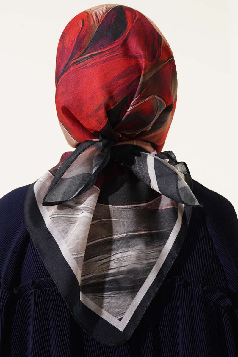 Tuval Desen Eşarp Siyah Bej