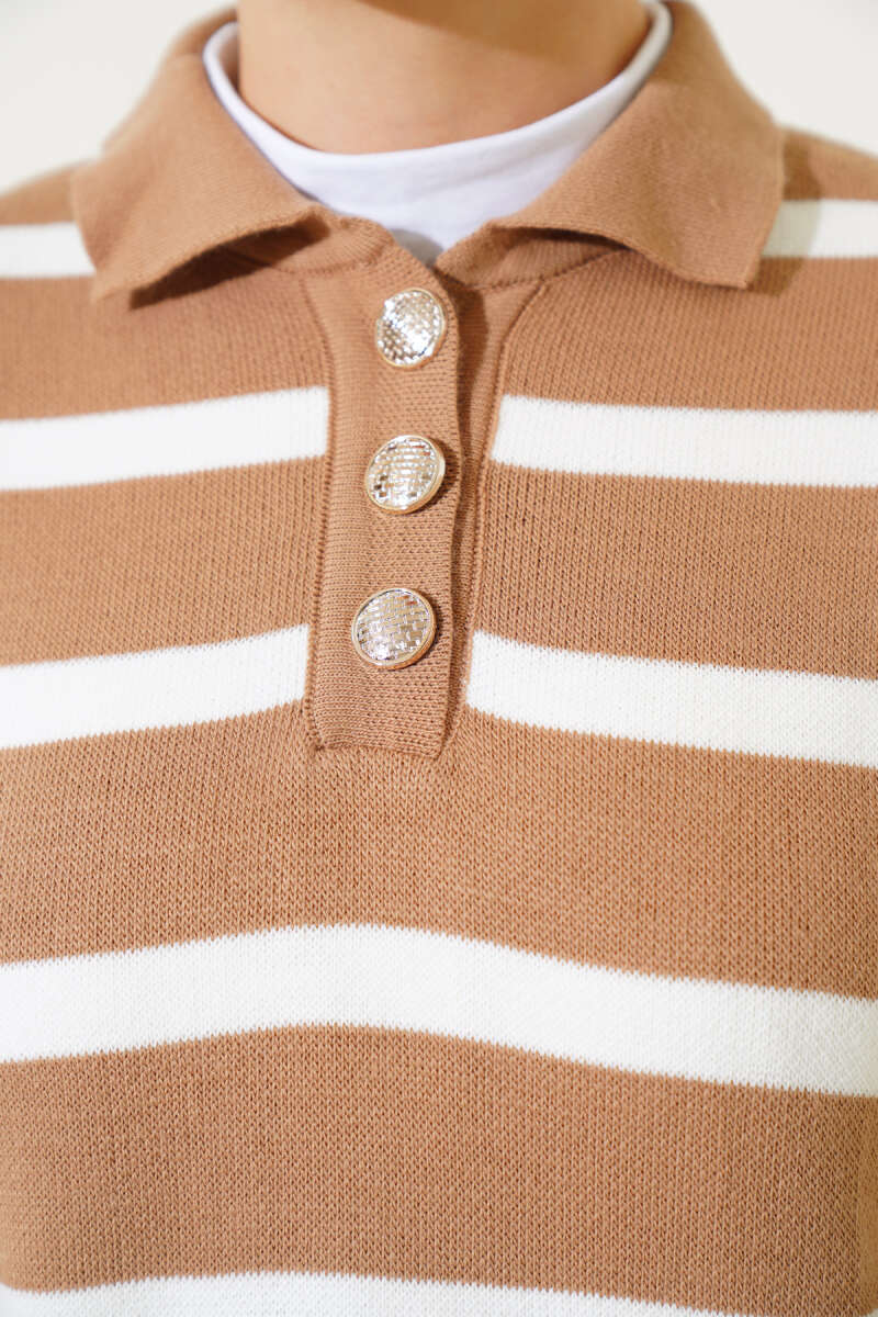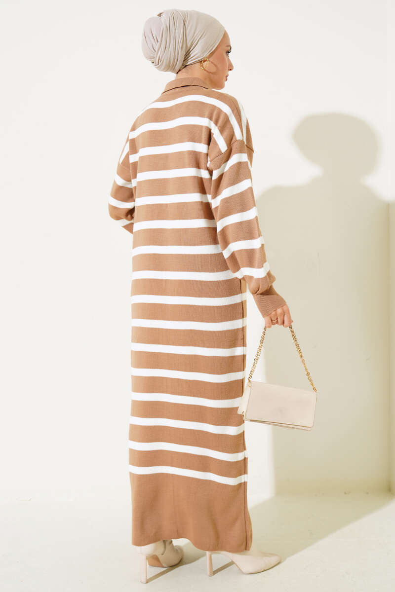 Gömlek Yaka Düğmeli Triko Elbise Kahve