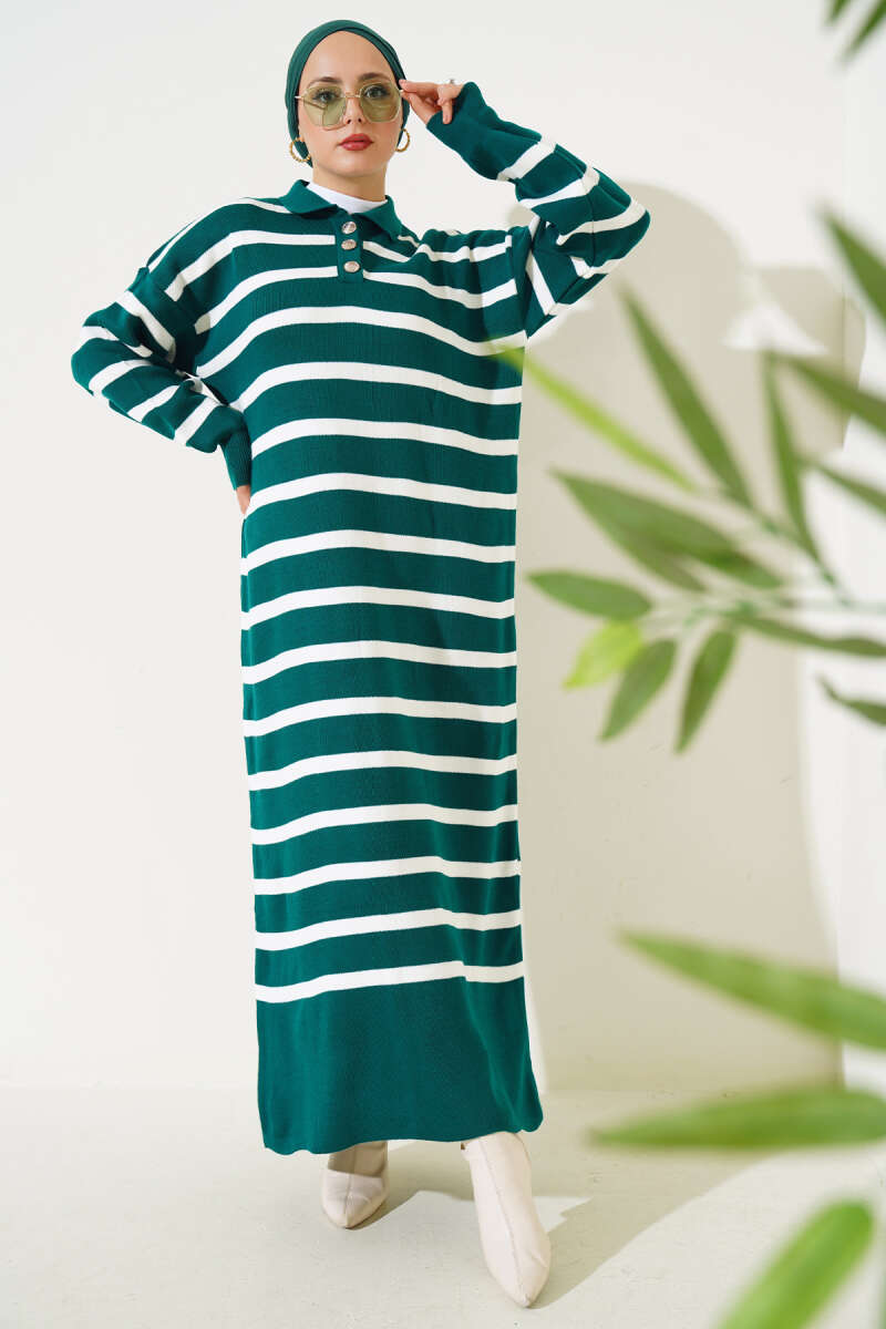 Gömlek Yaka Düğmeli Triko Elbise Nefti