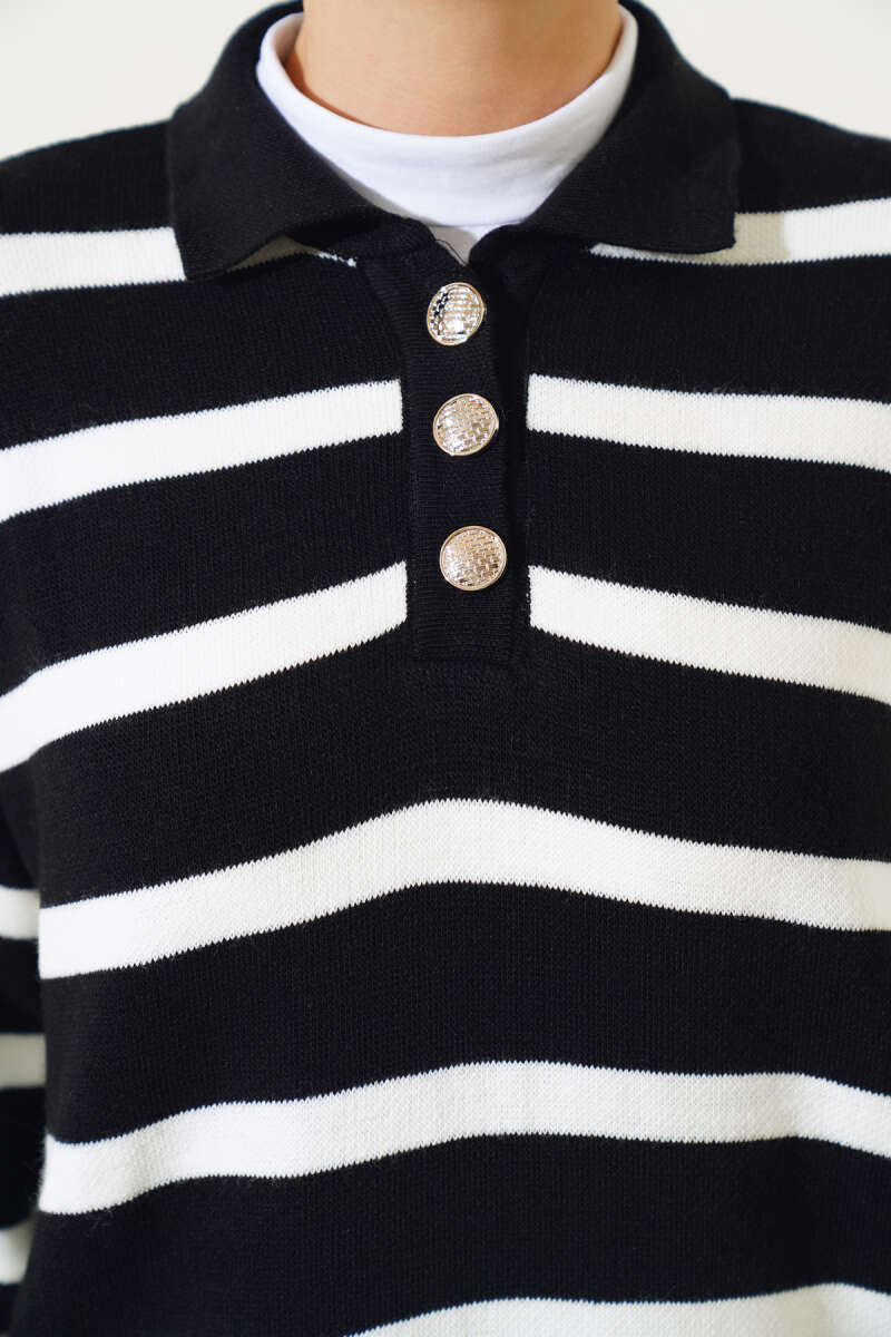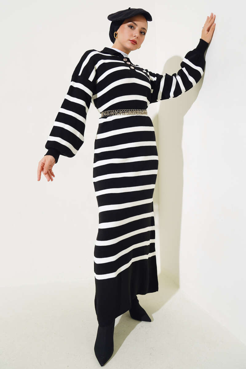 Gömlek Yaka Düğmeli Triko Elbise Siyah