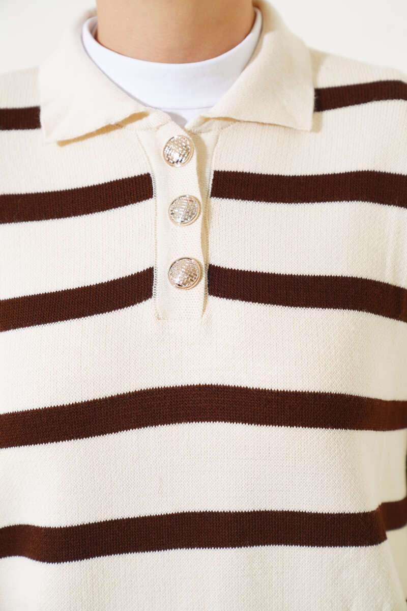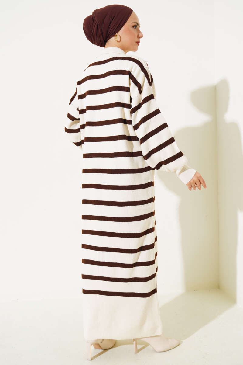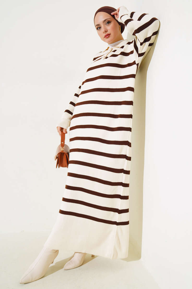 Gömlek Yaka Düğmeli Triko Elbise Kahve