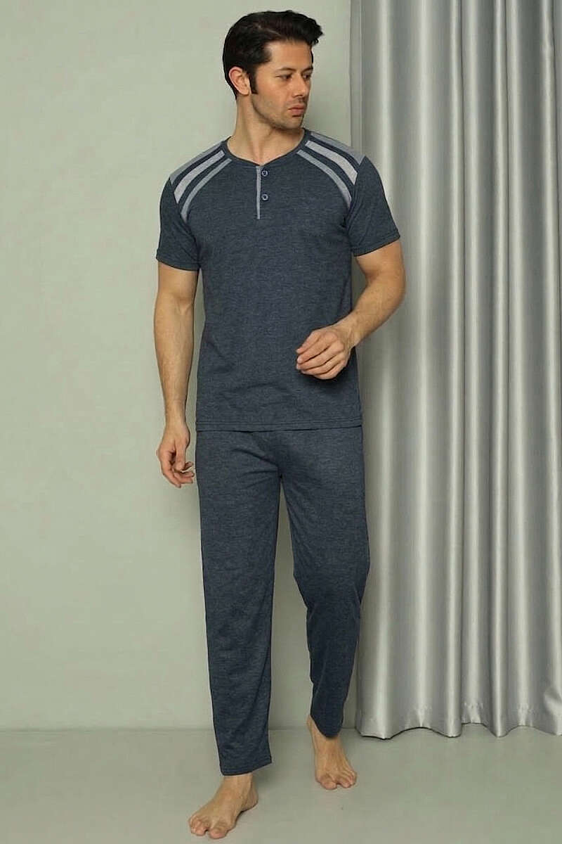 Üç Düğmeli Ekose Detaylı Kısa Kol Erkek Pijama Takımı Parlement