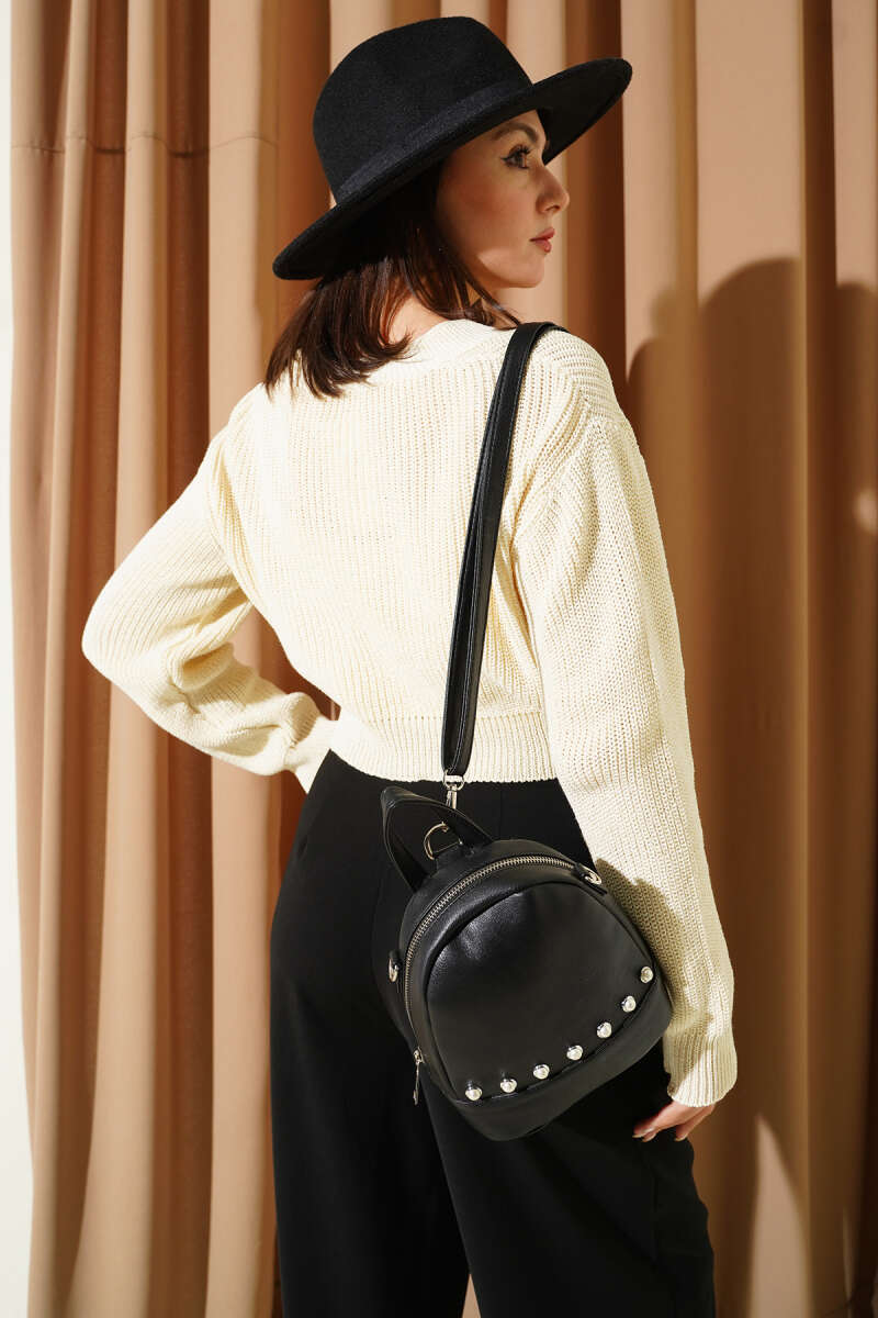 Üç Düğmeli Triko Crop Hırka Siyah