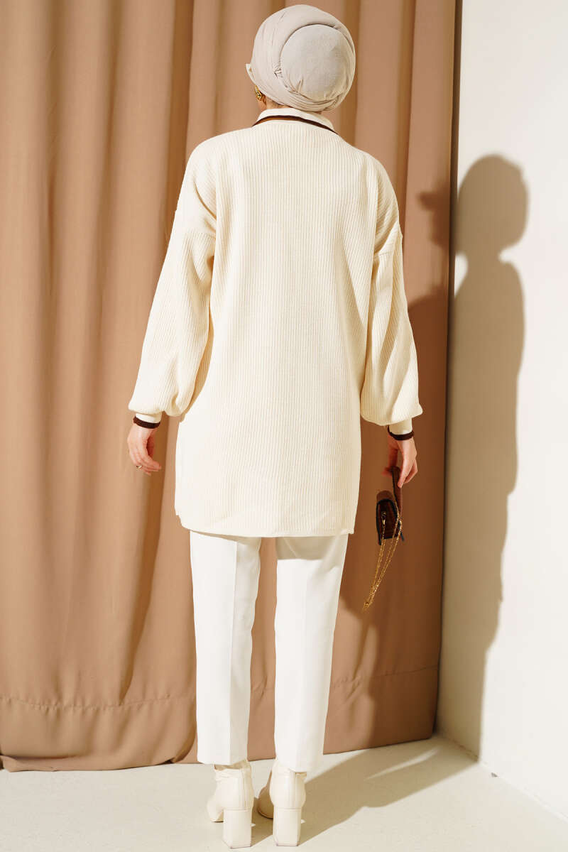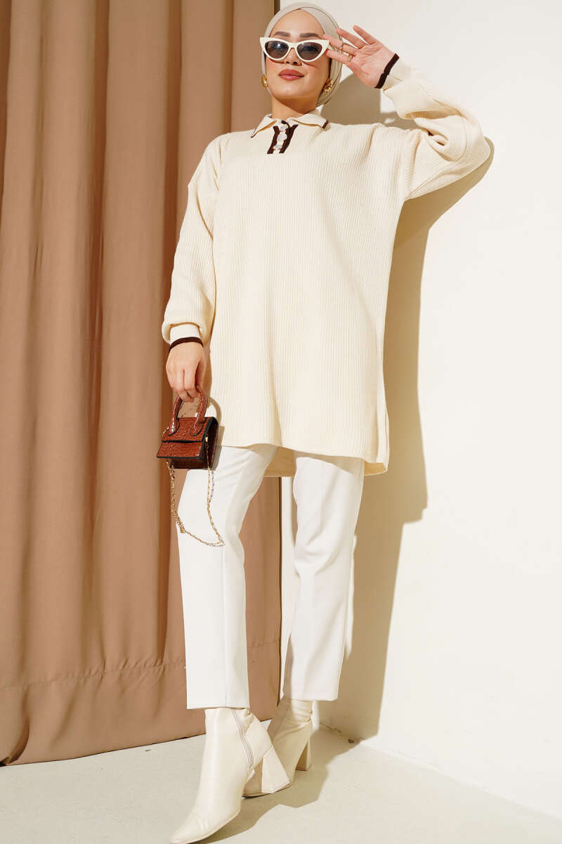 Yanı Yırtmaçlı Oversize Triko Tunik Vizon