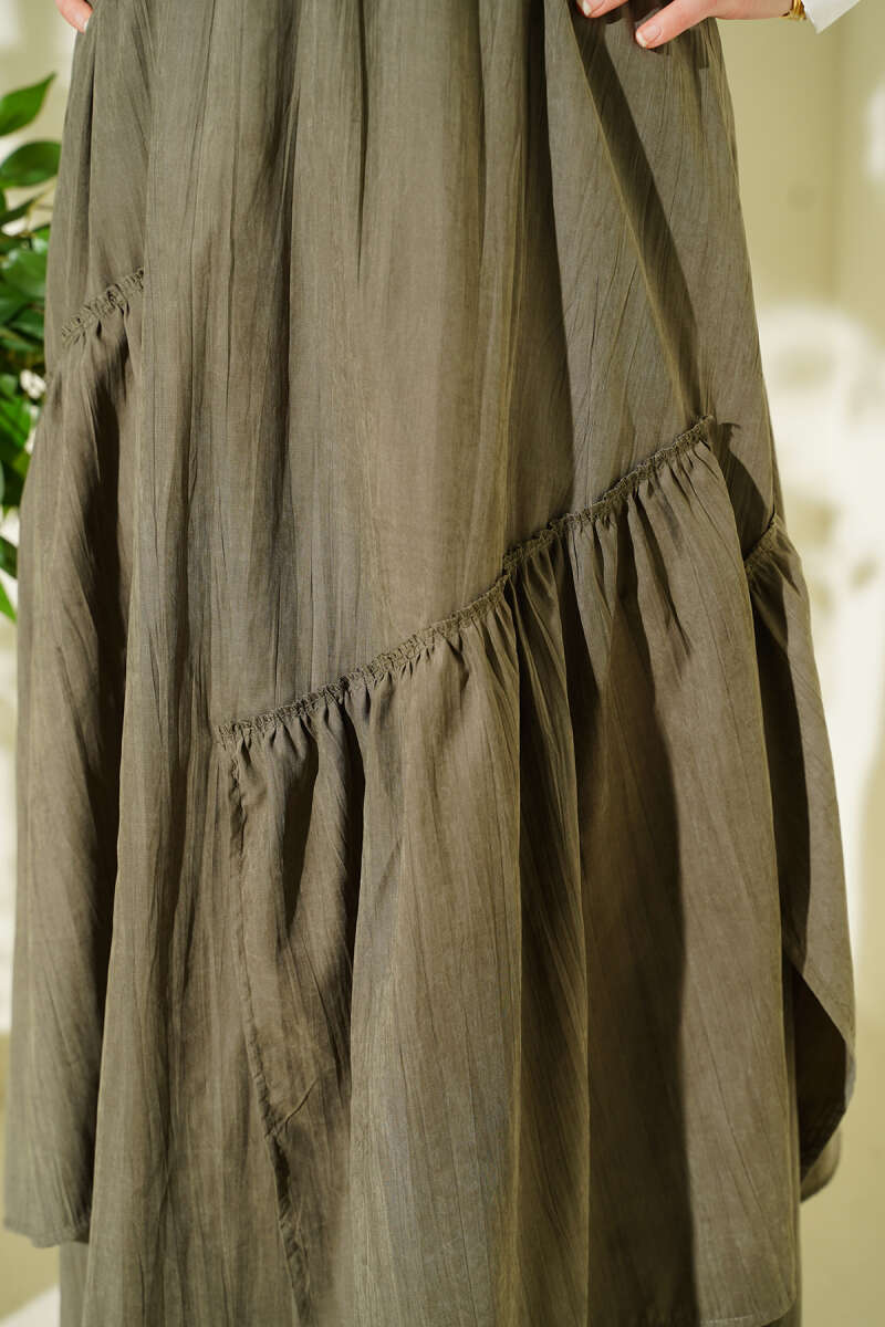 Gold Tokalı Pensli Tencel Elbise Kahve