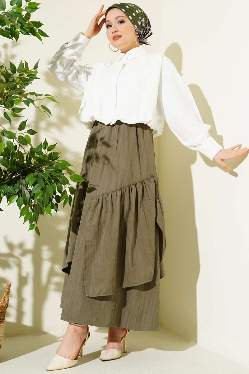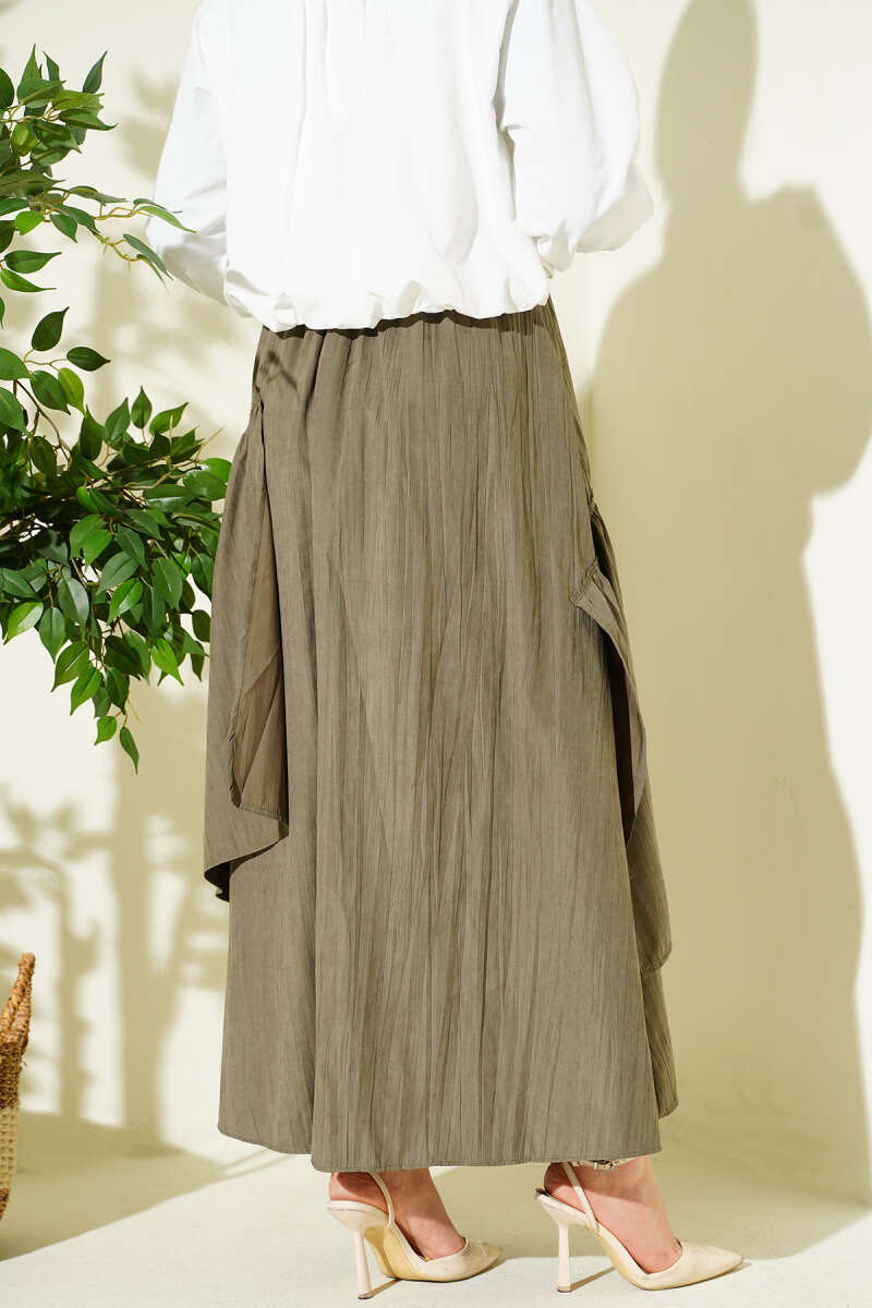 Beli Kemerli Lastikli Pileli Etek Vizon