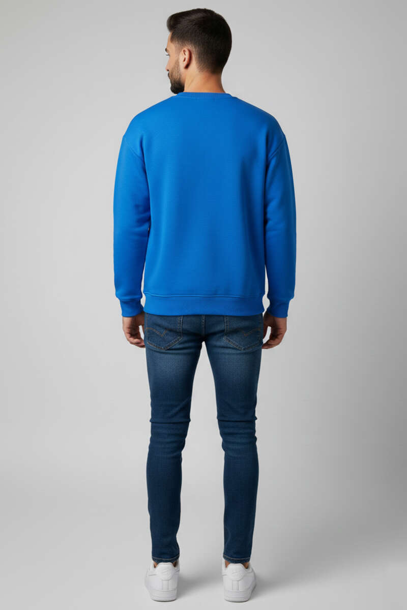 Üç İplik Bisiklet Yaka Erkek Sweatshirt Saks
