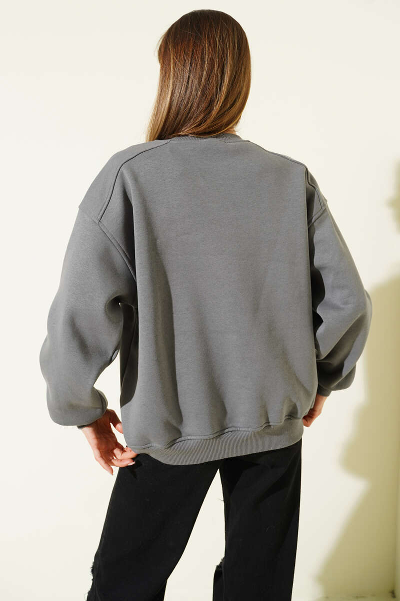 Kol Şeritli Fiyonklu Üç İplik Sweatshirt Melanj Gri