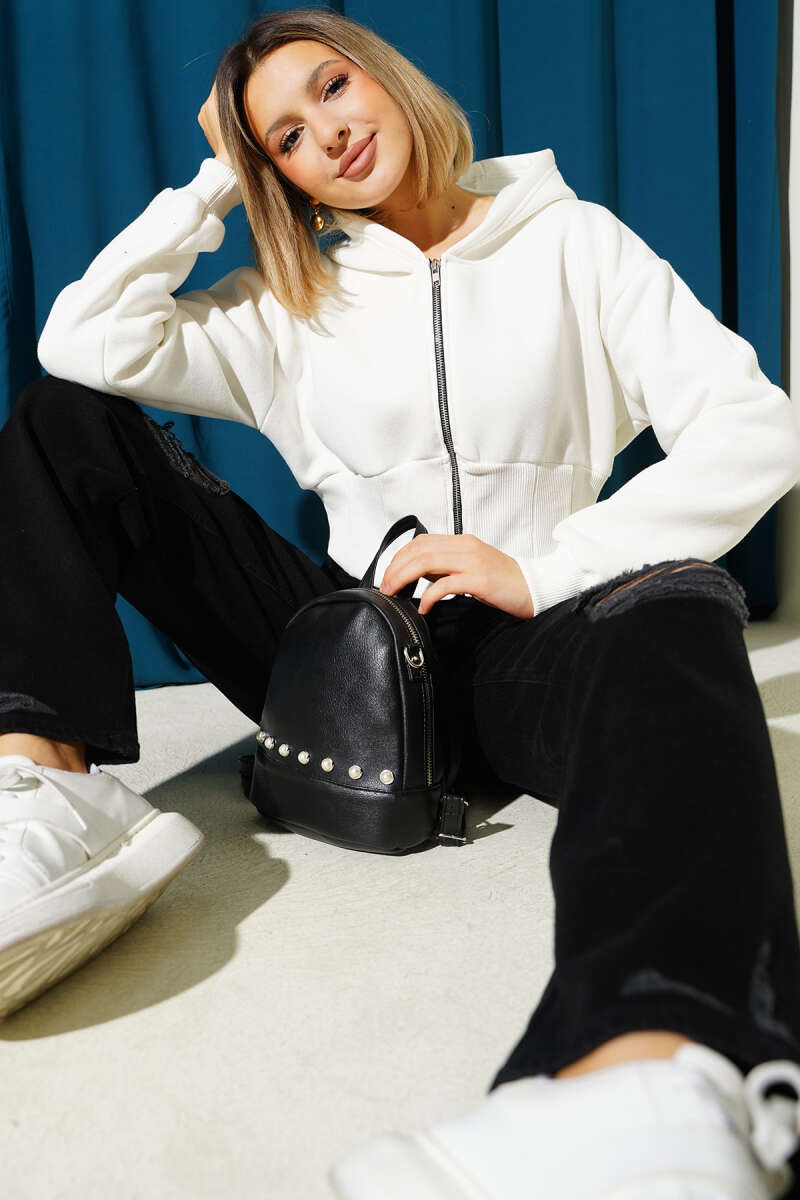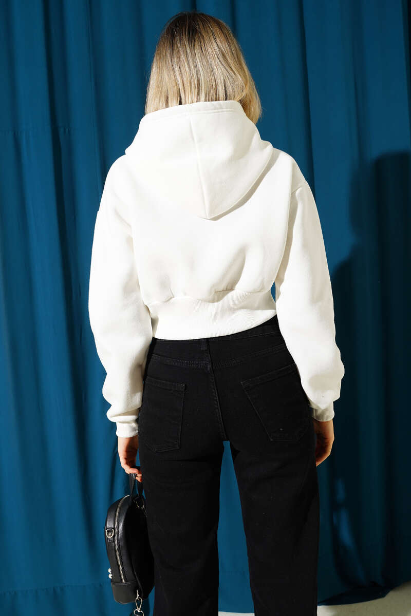 Nakış Detaylı Üç İplik Sweatshirt İkili Takım Ekru