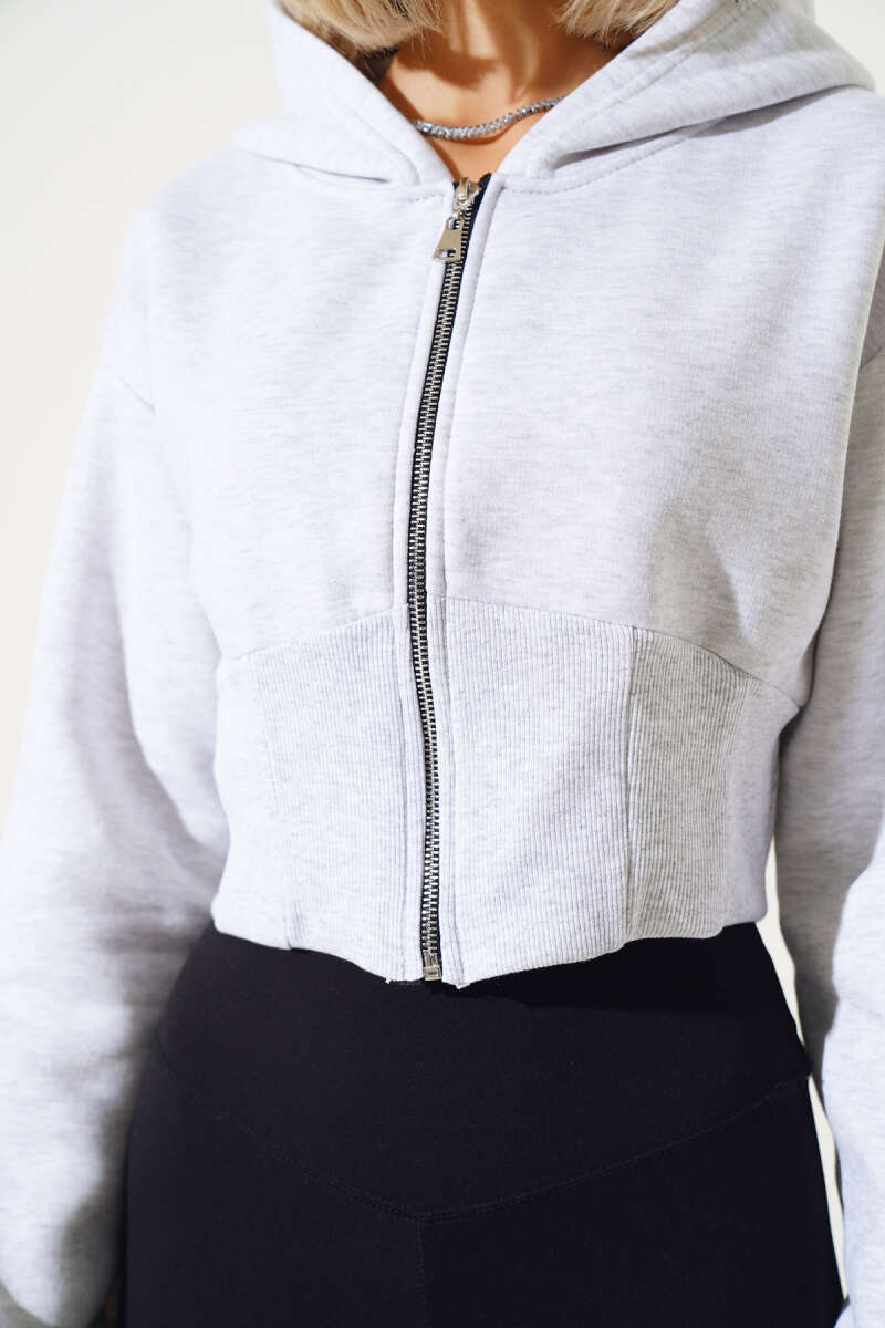 Fermuarlı Kısa Kaşe Bomber Ceket Gri