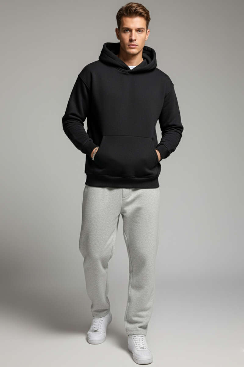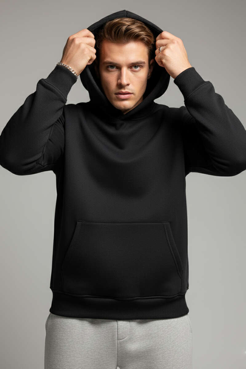 Üç İplik Kapüşonlu Erkek Sweatshirt Ekru