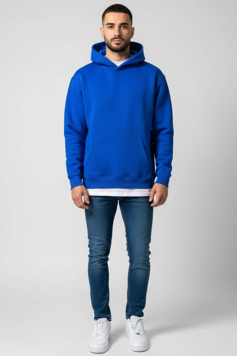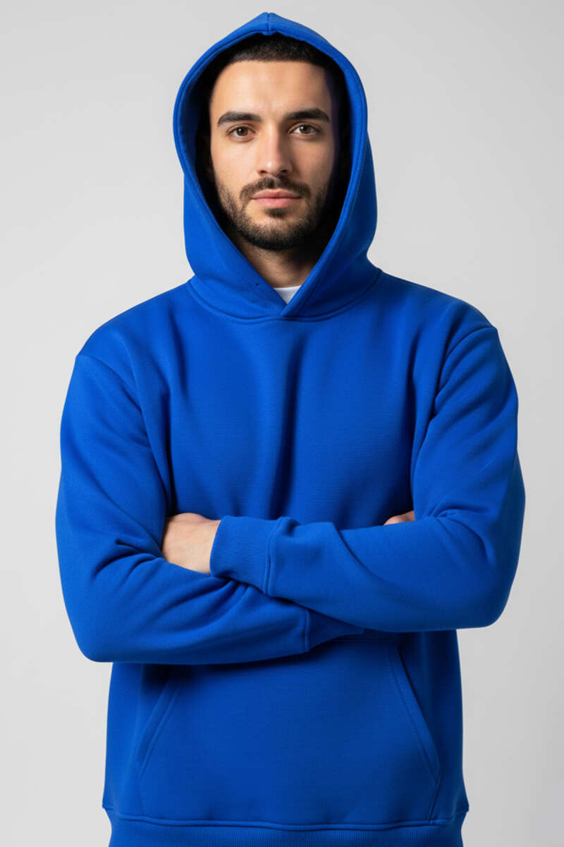 Üç İplik Kapüşonlu Unisex Sweatshirt Mavi