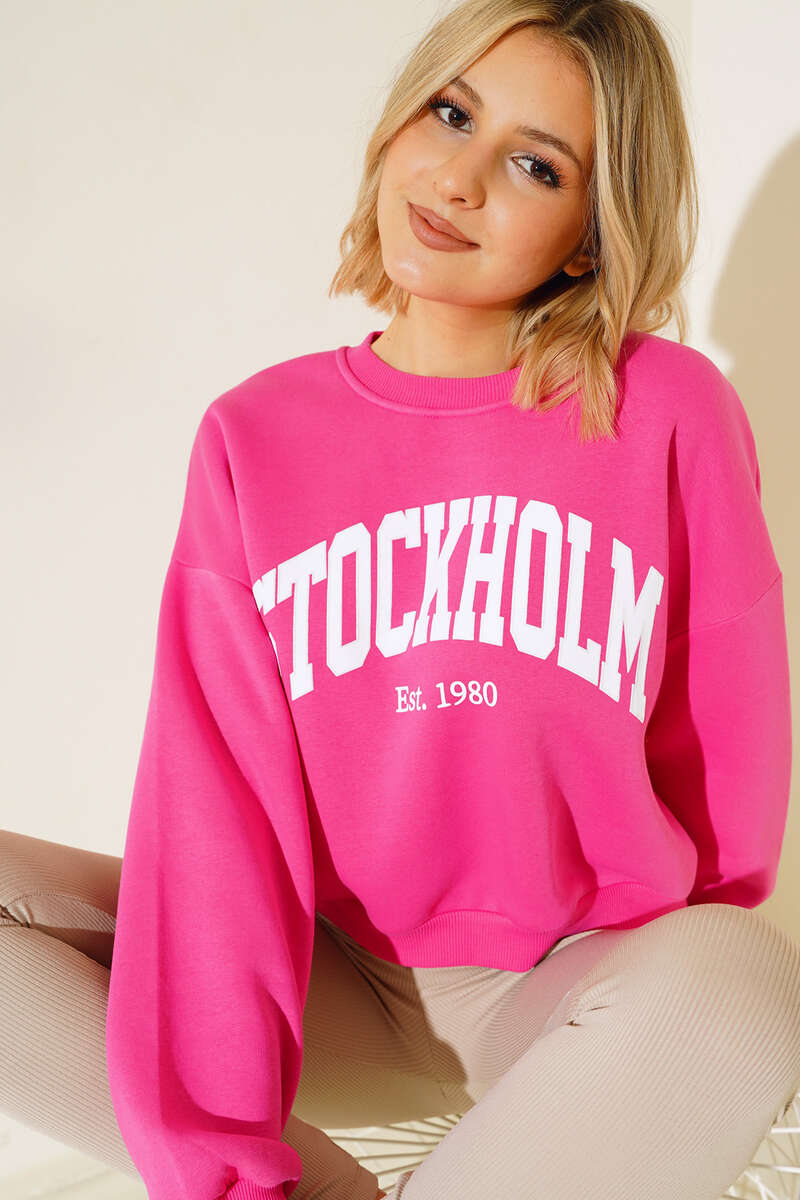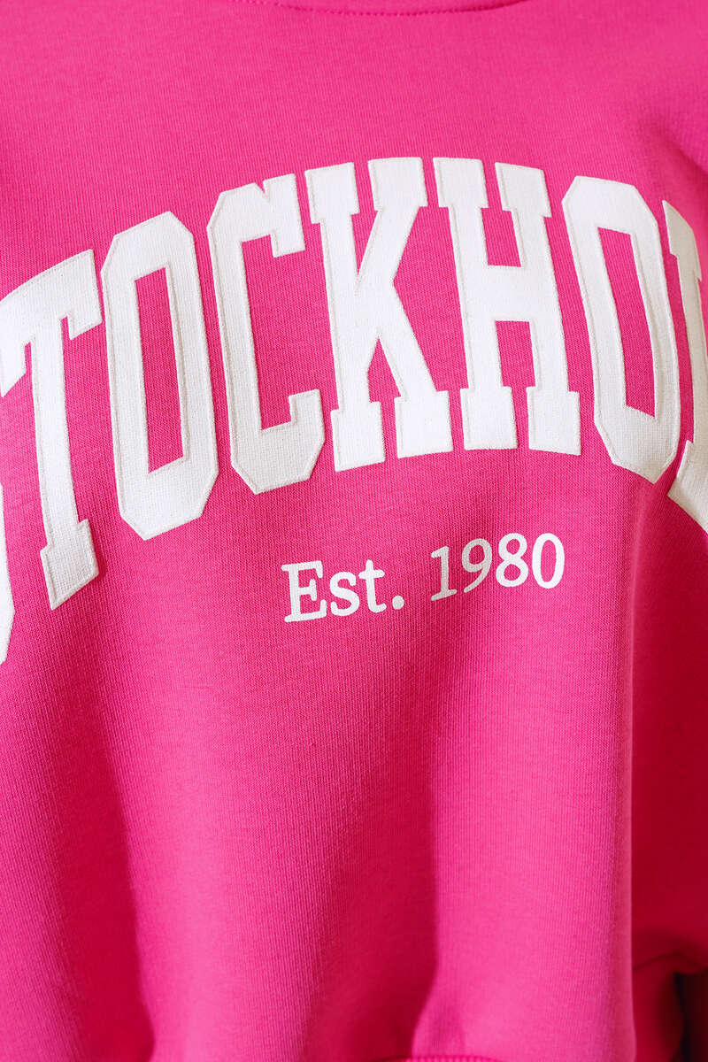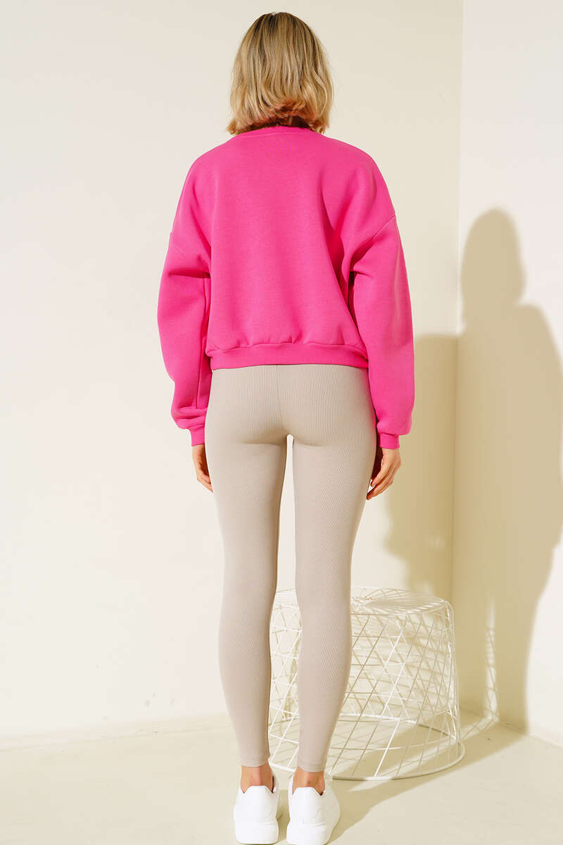 Üç İplik Kısa Sweatshirt Fuşya