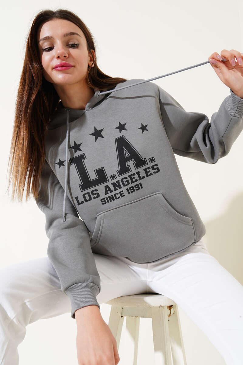 NYC Baskılı Üç İplik Sweat İkili Takım Melanj Gri