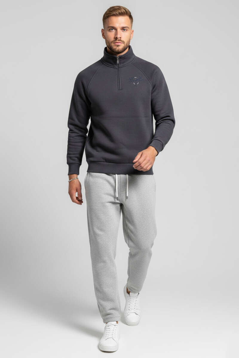 Selanik Yarım Fermuarlı Erkek Sweatshirt Acı Kahve