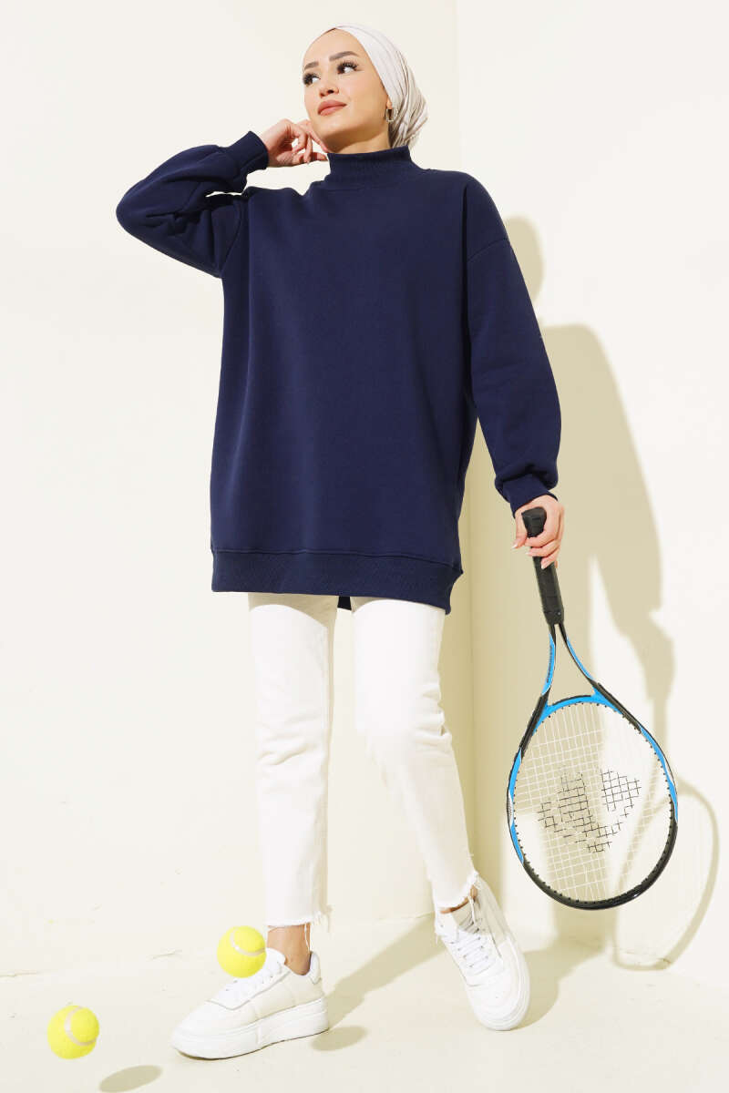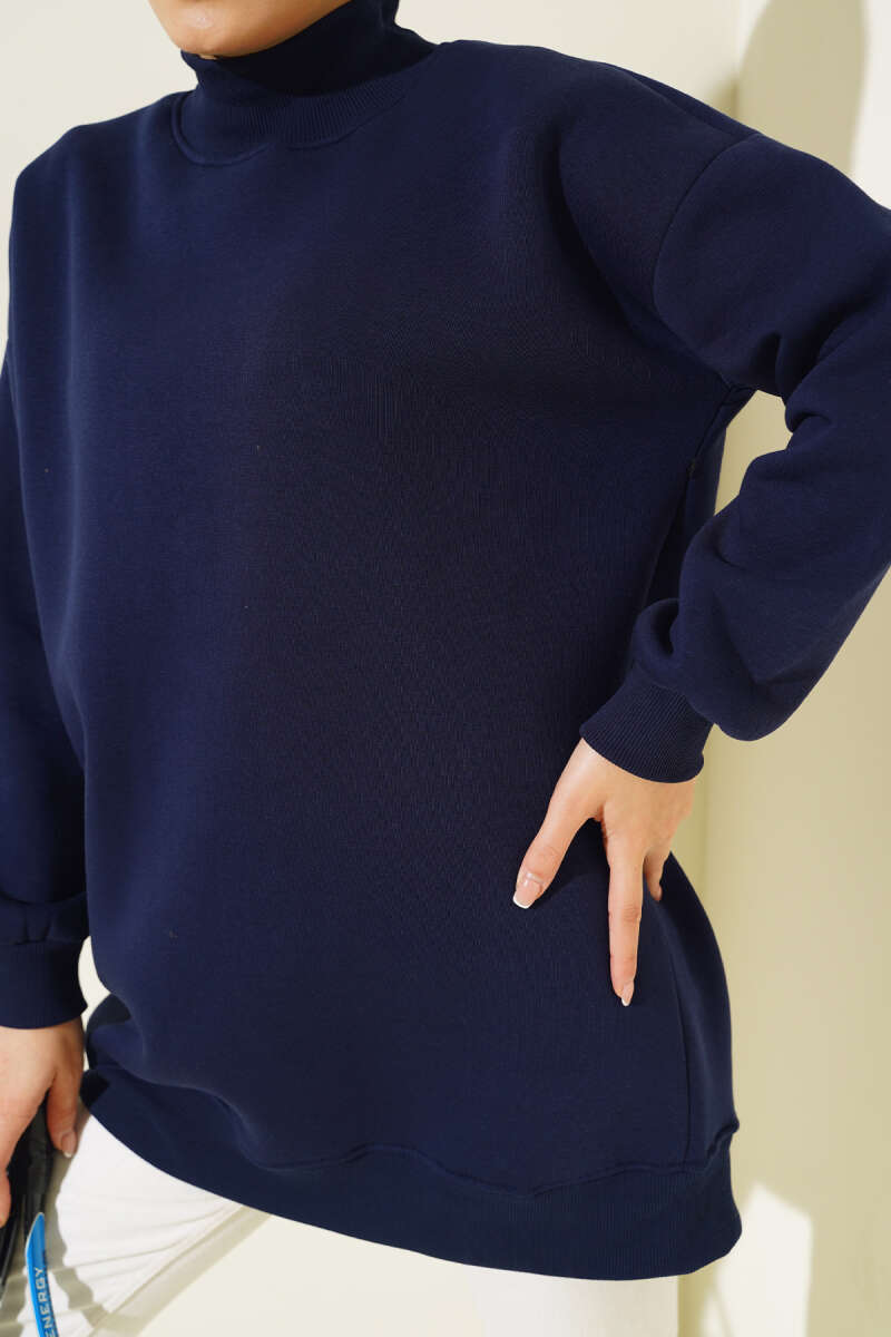 Üç İplik Yarım Balıkçı Yaka Tunik Lacivert