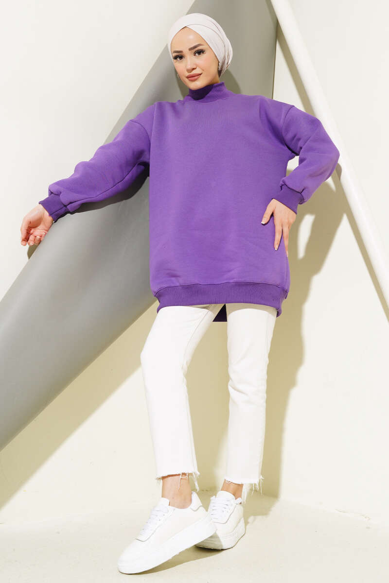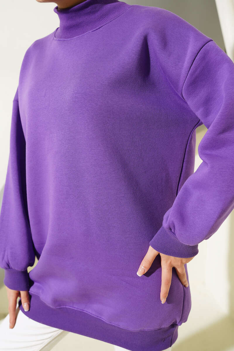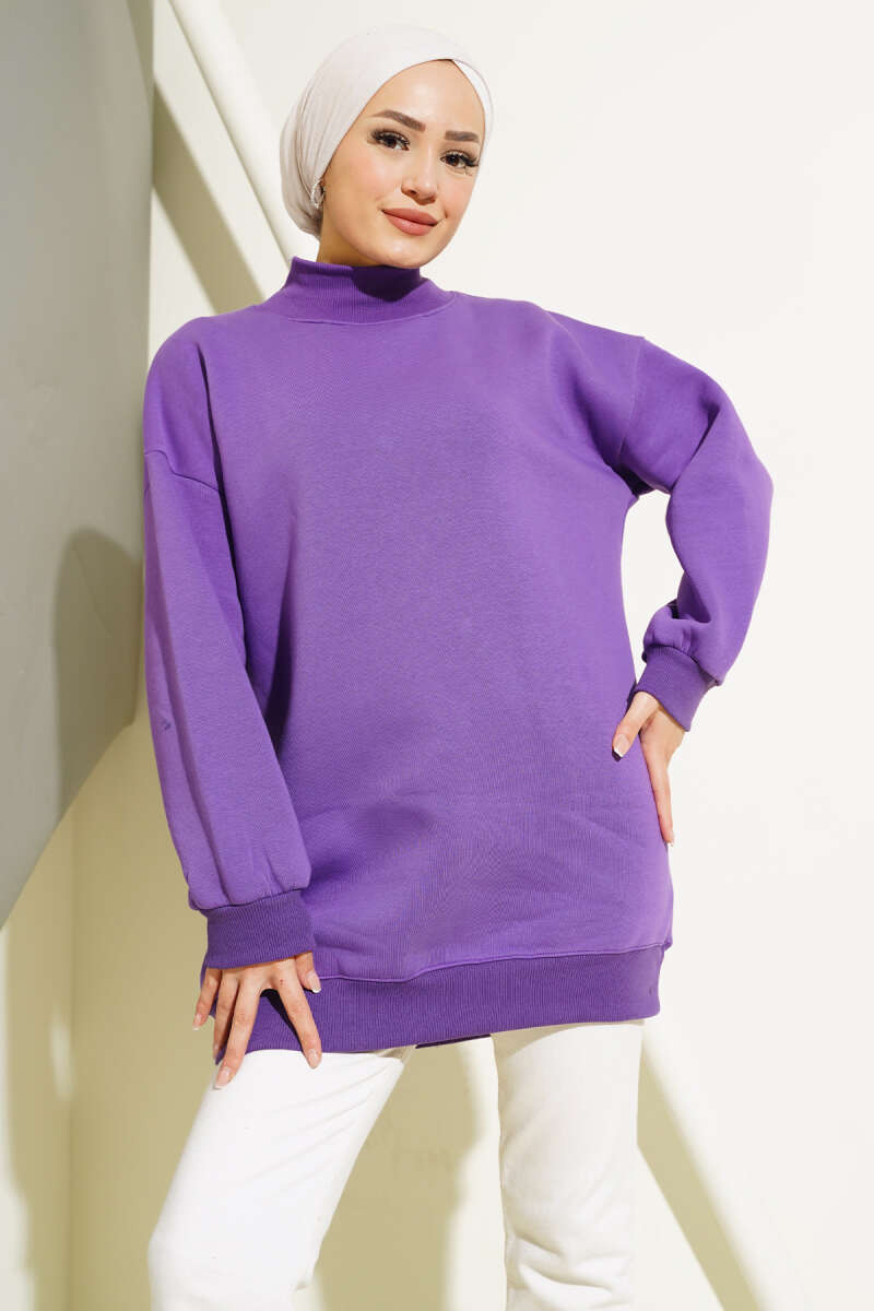 Üç İplik Yarım Balıkçı Yaka Tunik Lila