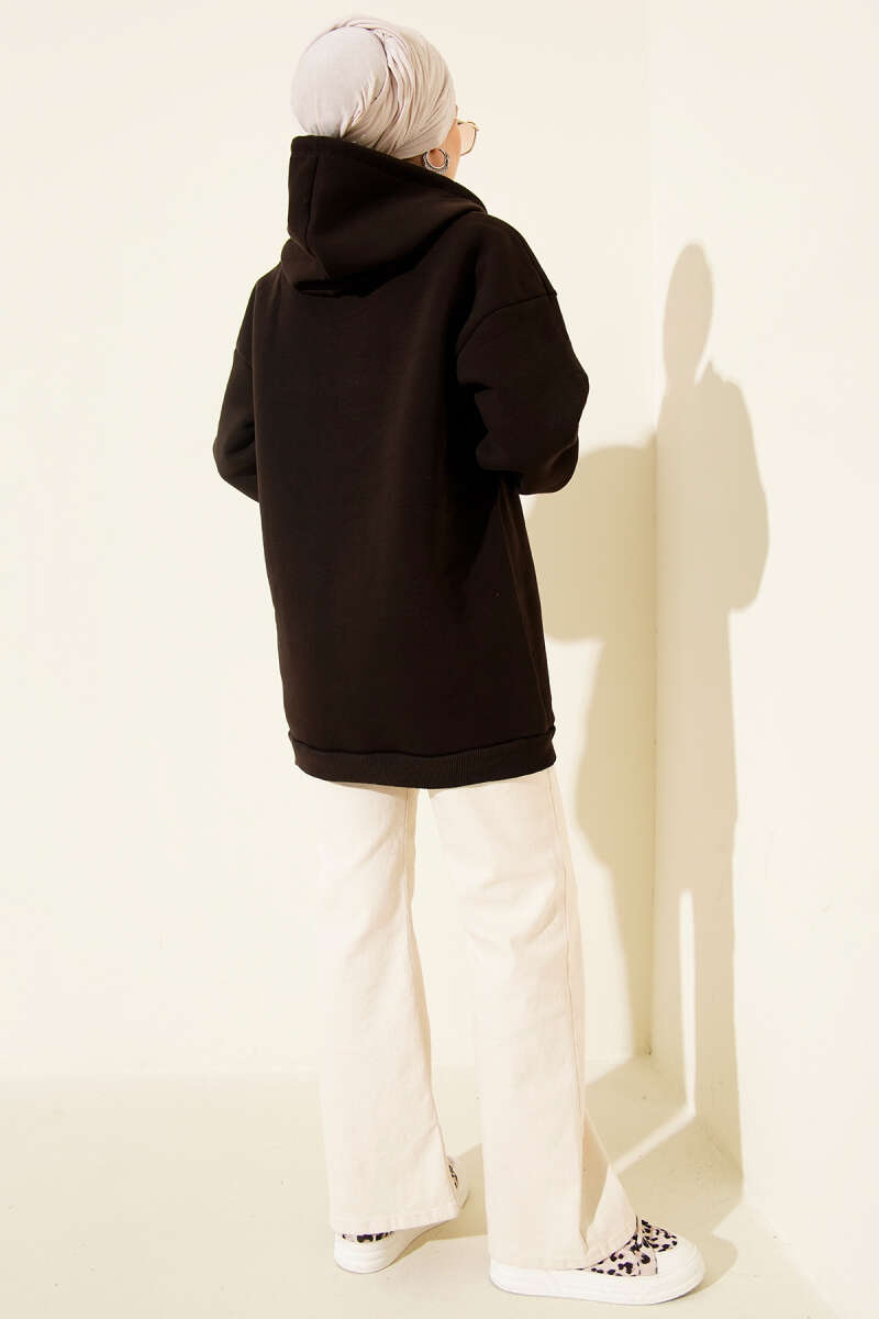 Üç İplik Yarım Çıtçıtlı Sweatshirt Siyah