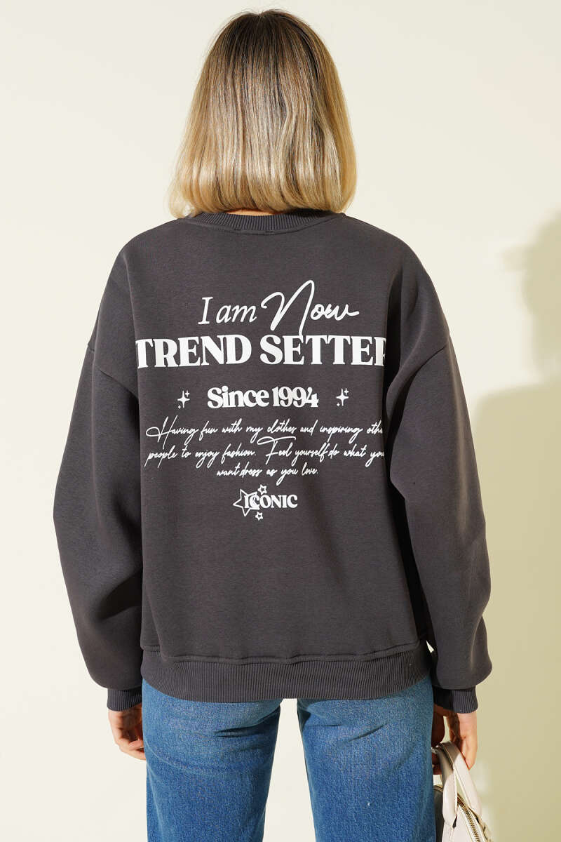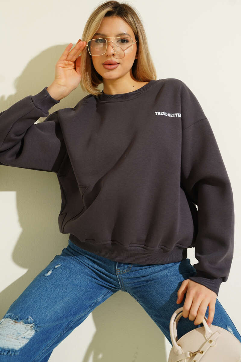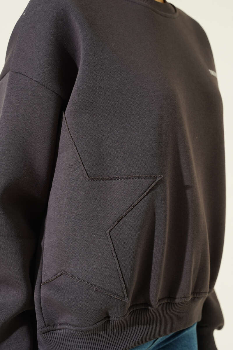 Üç İplik Yıldız Parçalı Sweatshirt Füme
