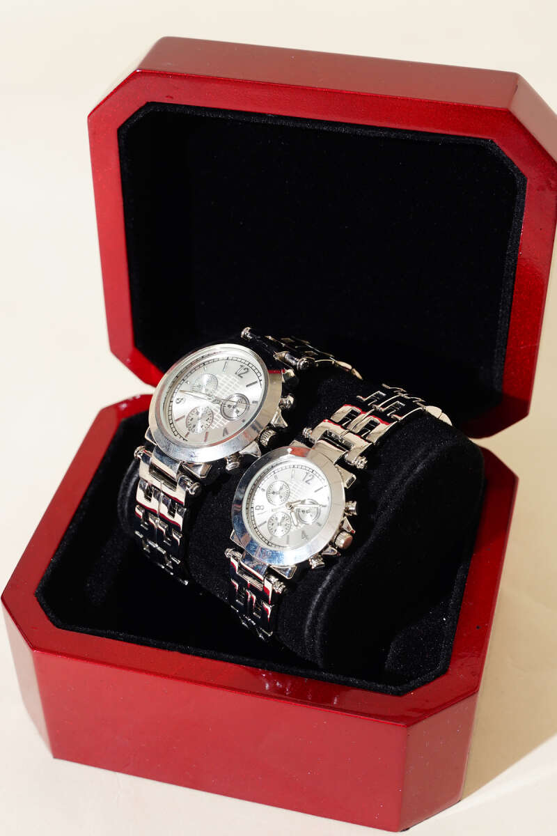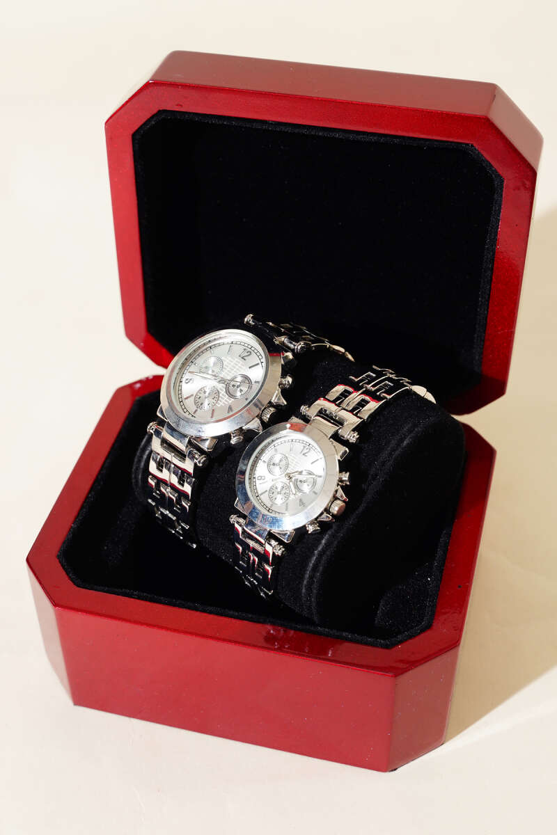 Üç Kadran Sevgili Çift Kol Saati Silver