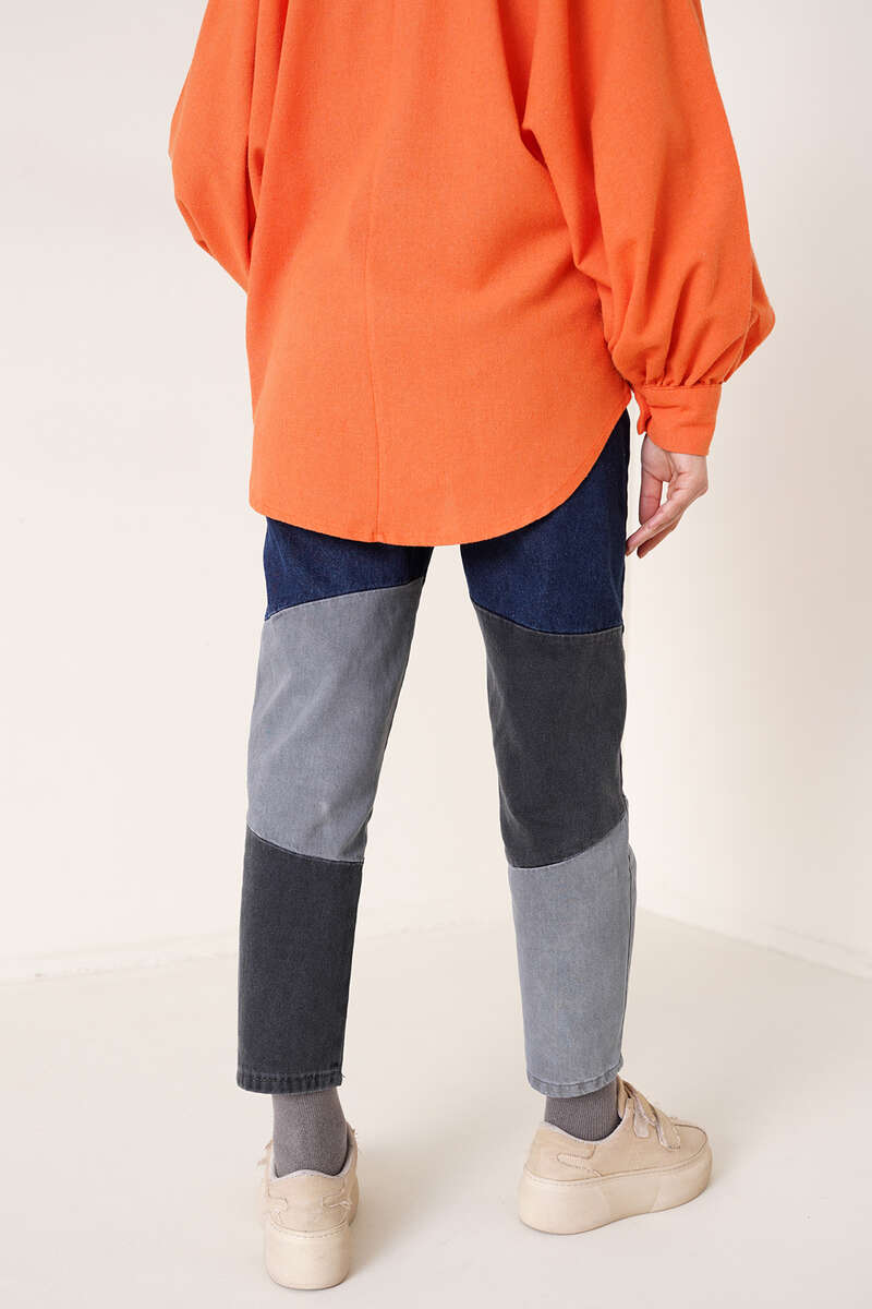 Yeni sezon jean pantolon üç parçadır. İki önde, iki arkada olmak üzere topplam dört cebi vardır. Beş adet kemer köprüsü bulunan pantolonumuz kombinlerinizde ilk tercihiniz olacaktır.