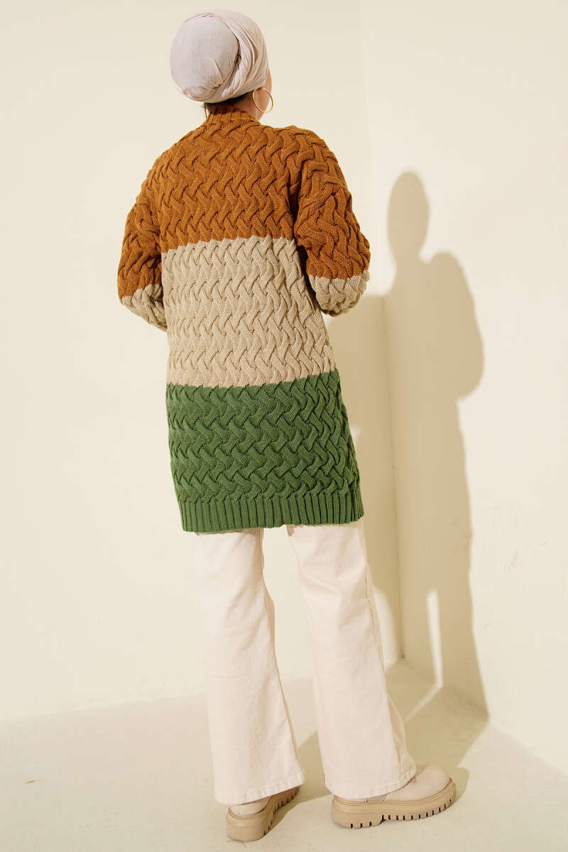 Fitilli Düğmeli Triko Hırka Mürdüm
