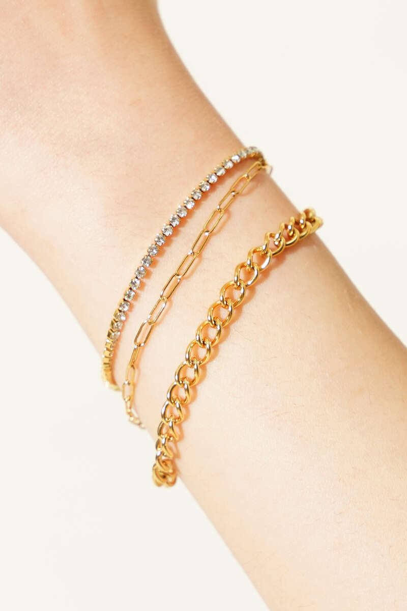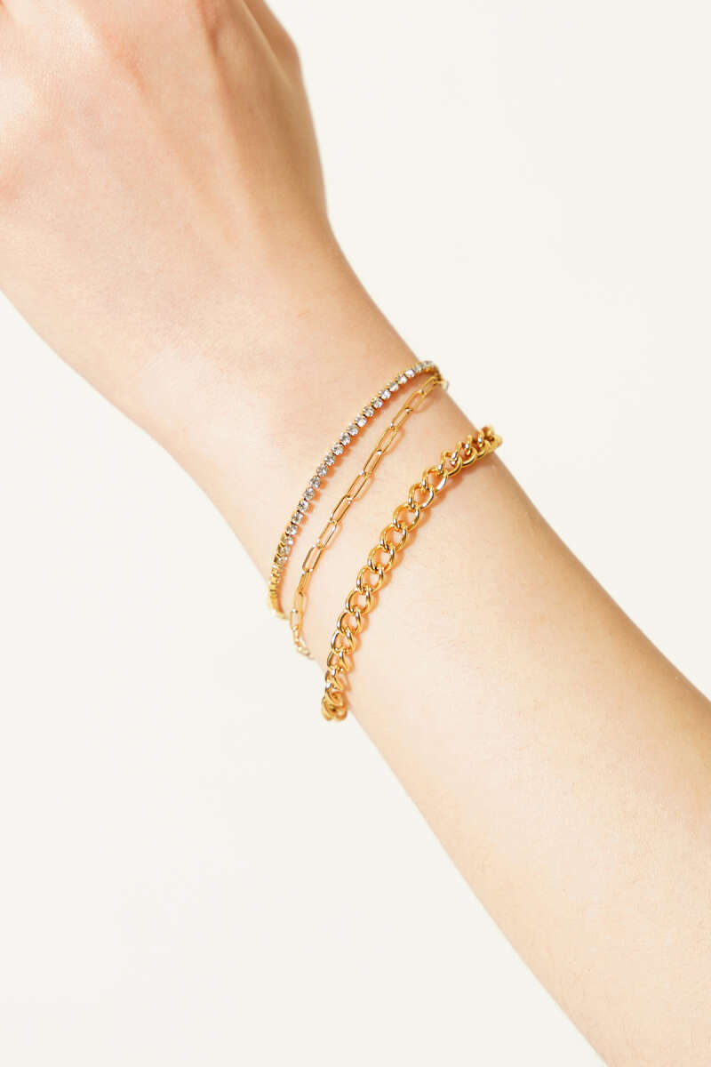 Üç Sıralı Su Yolu ve Ataç Zincir Bileklik Gold