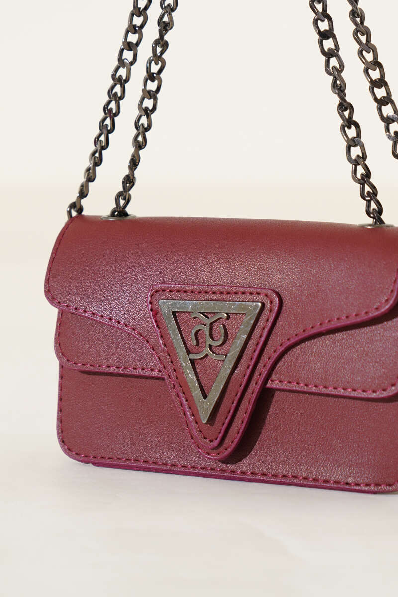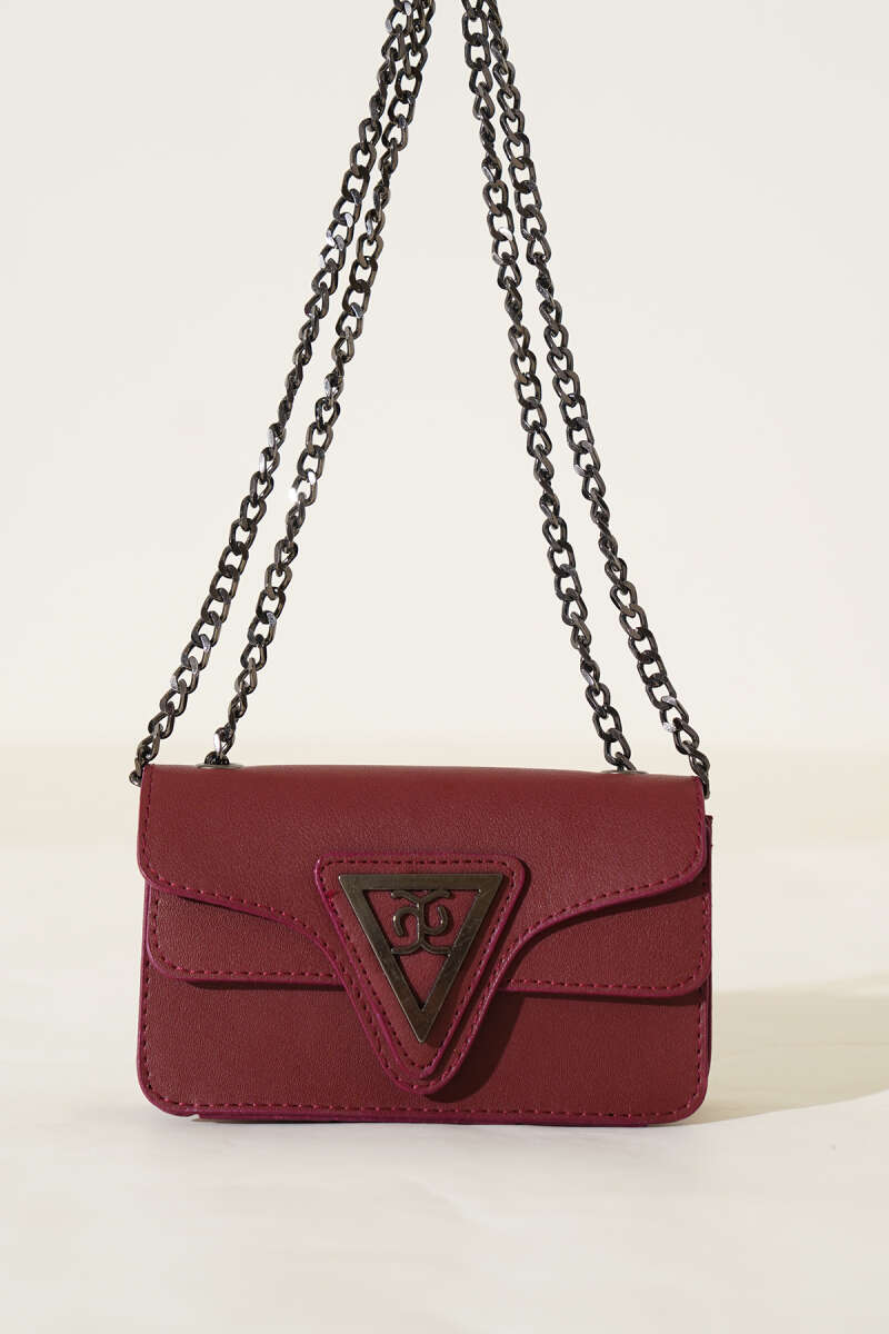 Üçgen Armalı Zincir Askılı Çanta Bordo
