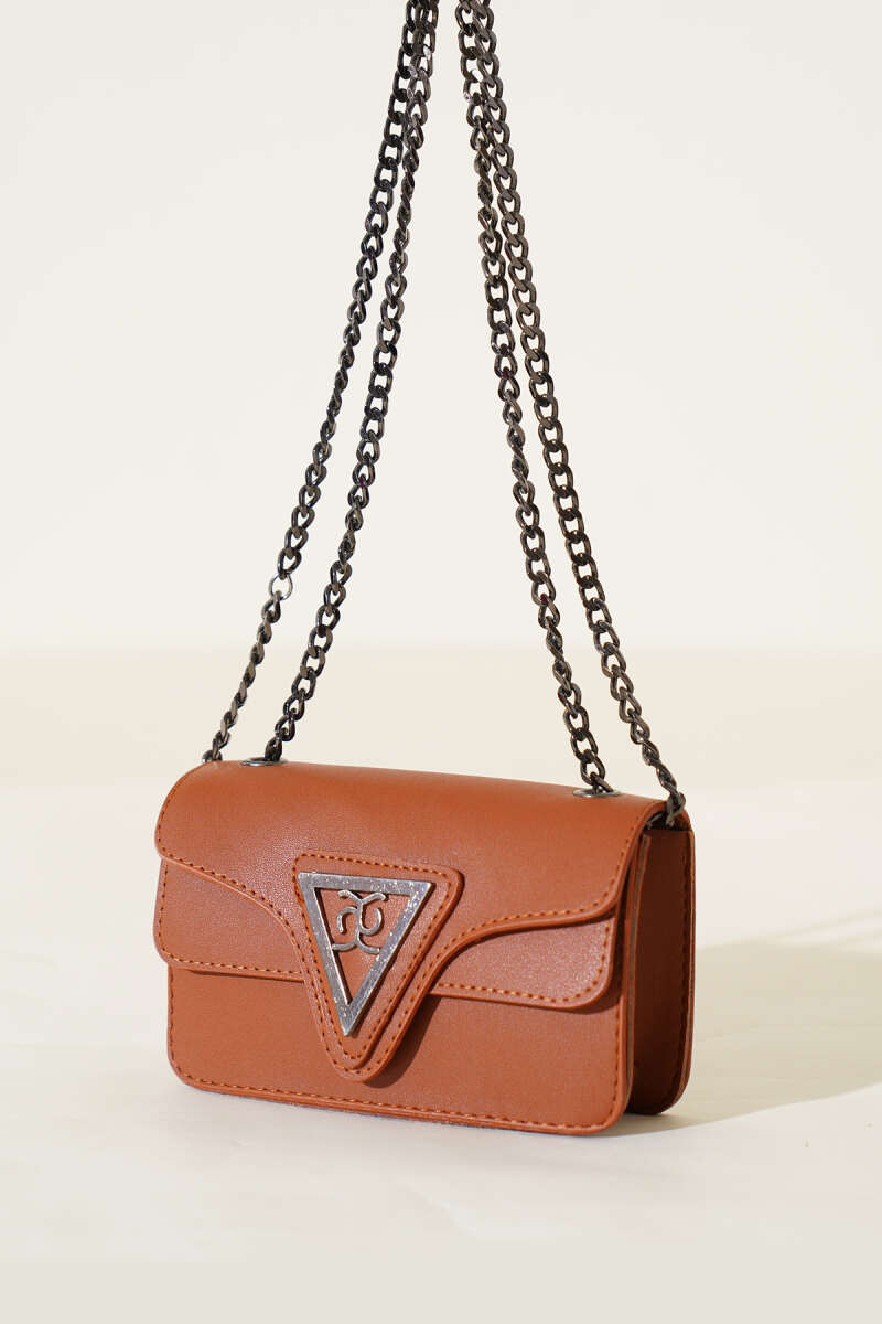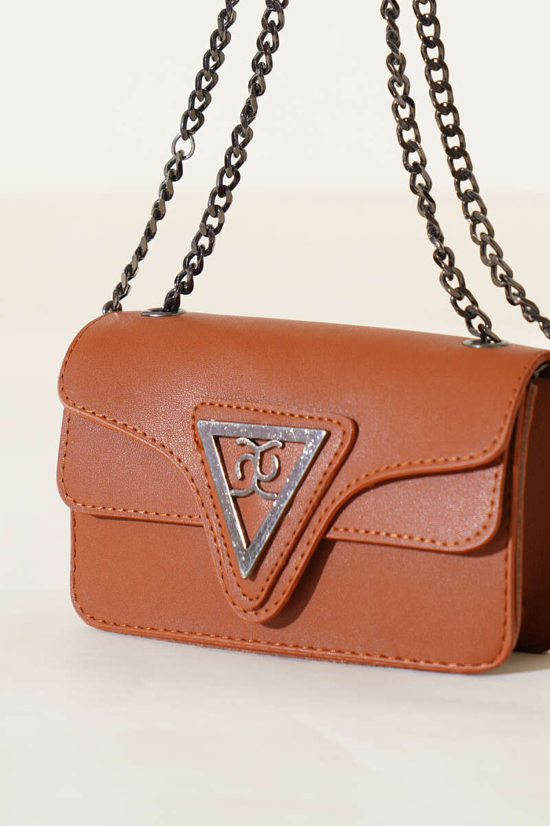 Üçgen Armalı Zincir Askılı Çanta Taba
