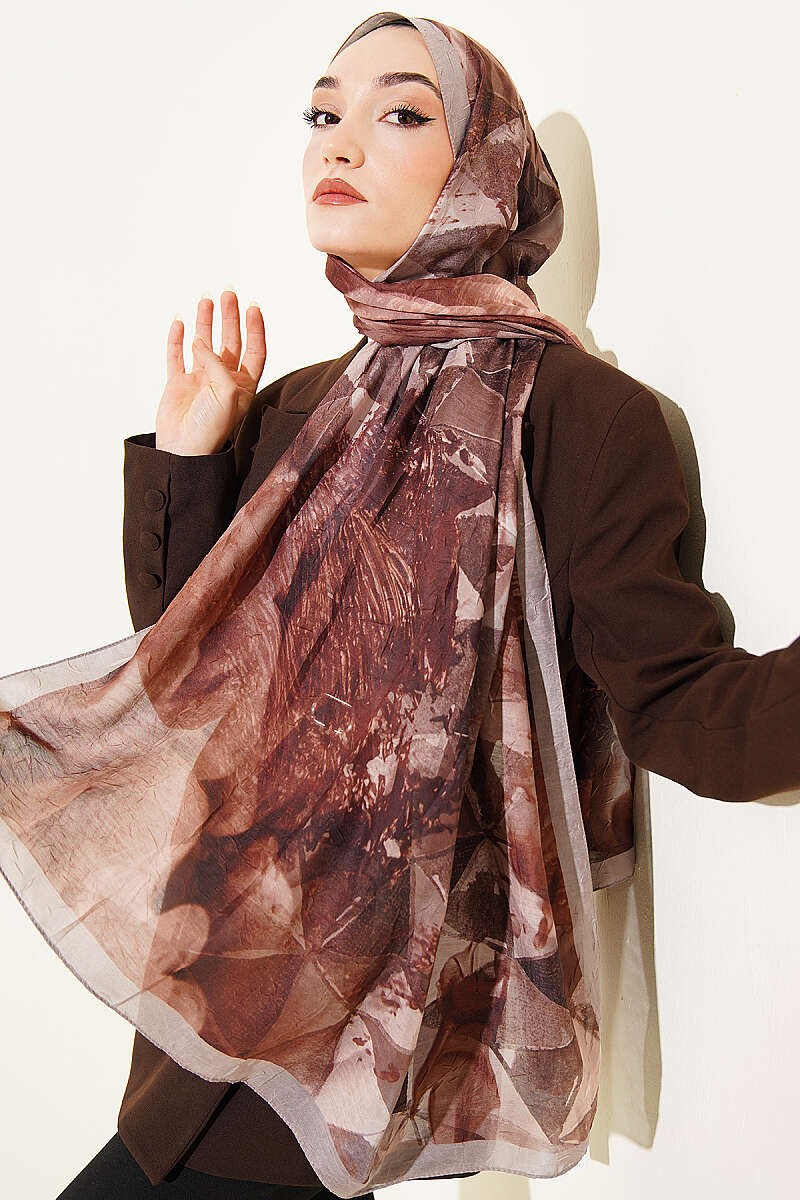 Çiçekli Flamu Cotton Eşarp Acı Kahve