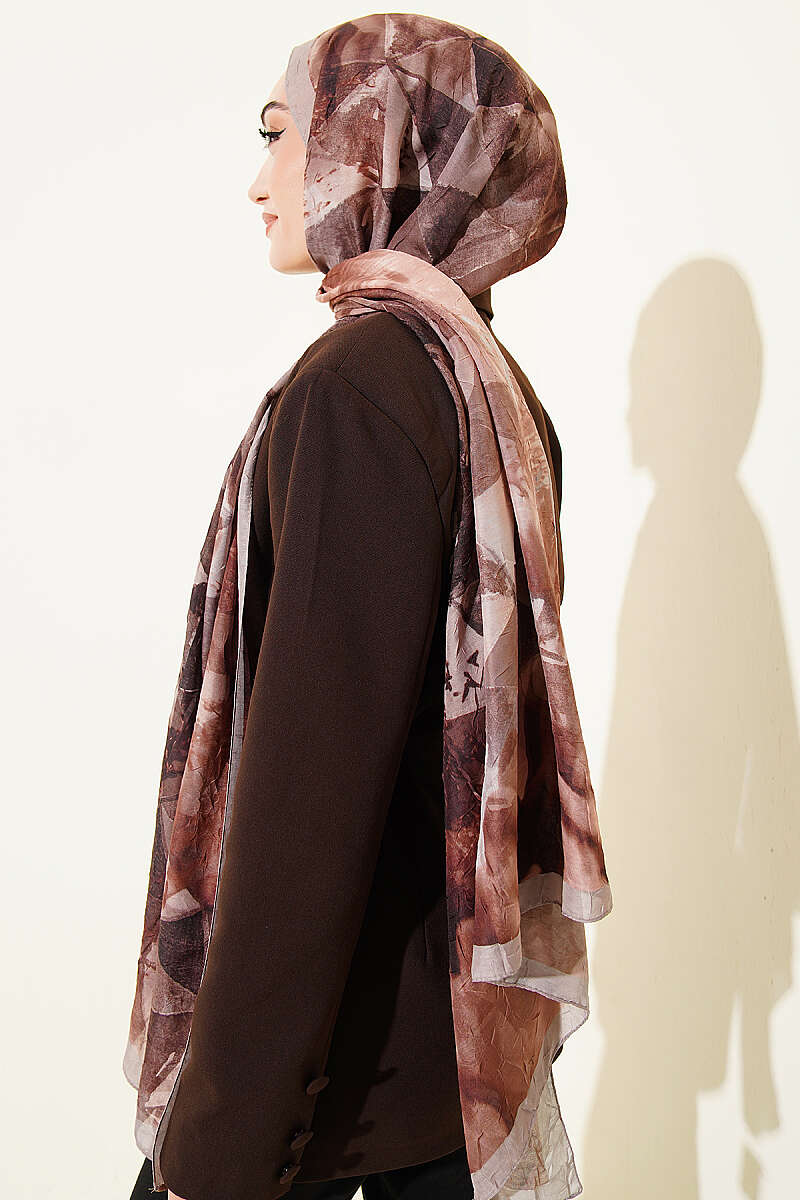 Lale Desen Bambu Kraş Eşarp Soft Kahve