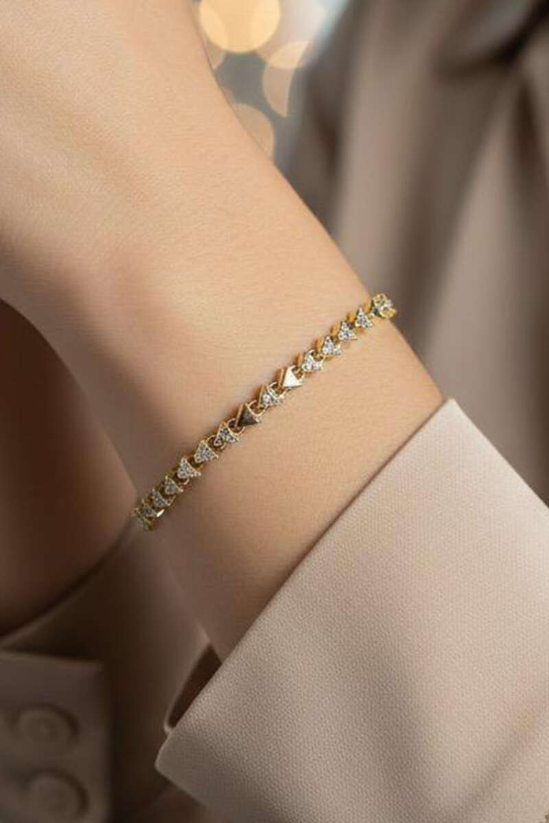 Gelince Haber VerPazarium kalite ve güvencesiyle beğenilerinize sunulan Üçgen Taşlı Bileklik, oldukça uygun bir aksesuar. Farklı kombinler ile kolaylıkla uyum sağlayacak olan Üçgen Taşlı Bileklik, kaliteli ve dayanıklı malzemesi ile uzun yıllar en şık kıyafetlerinizi mükemmel bir şekilde tamamlayacak!