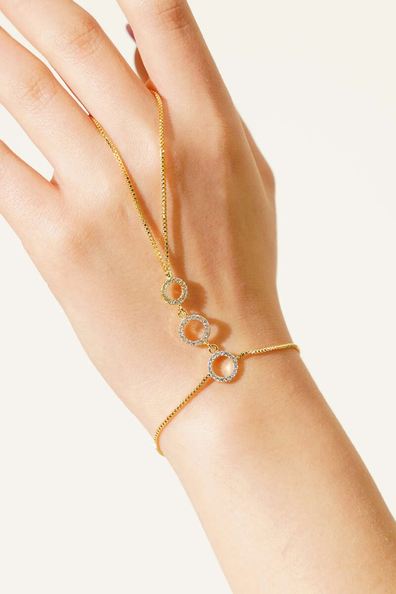 Üçlü Halka Figürlü Zirkon Taşlı Şahmeran Gold