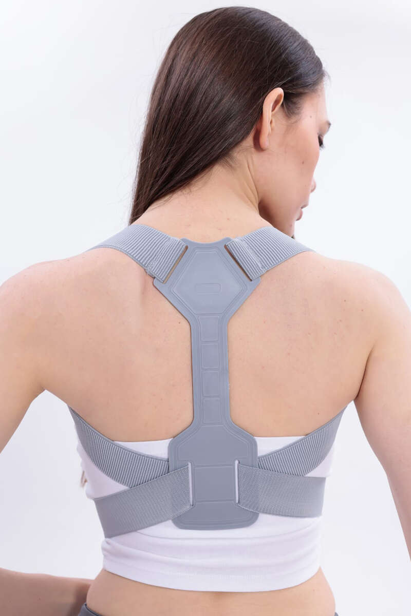 Unisex Ayarlanabilir Dik Duruş Korsesi Gri