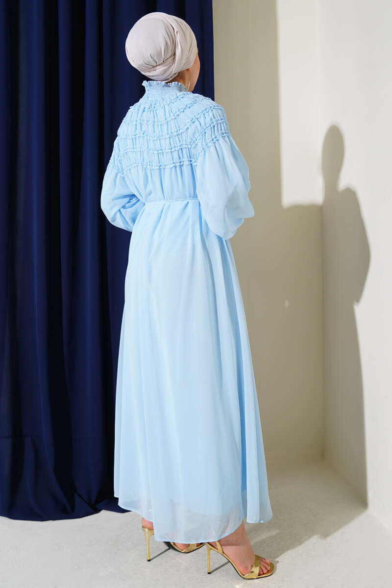 Omuz Pelerin Detaylı Abiye Elbise Lacivert