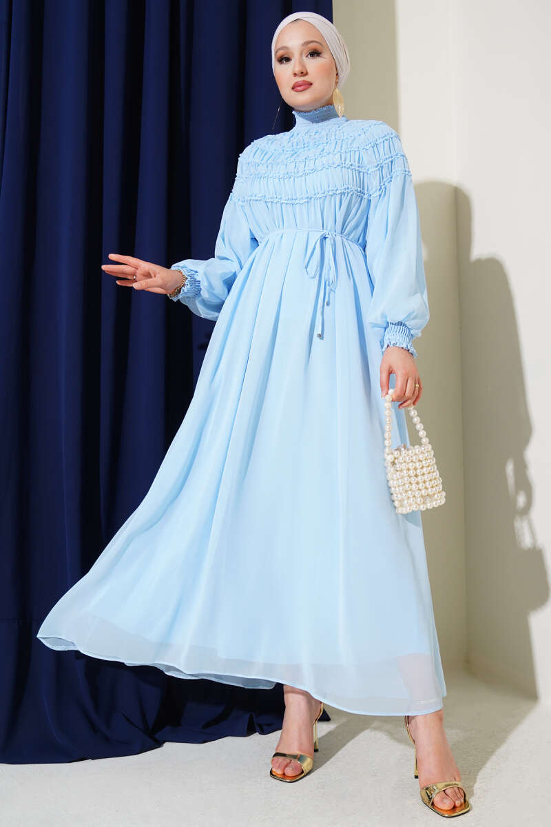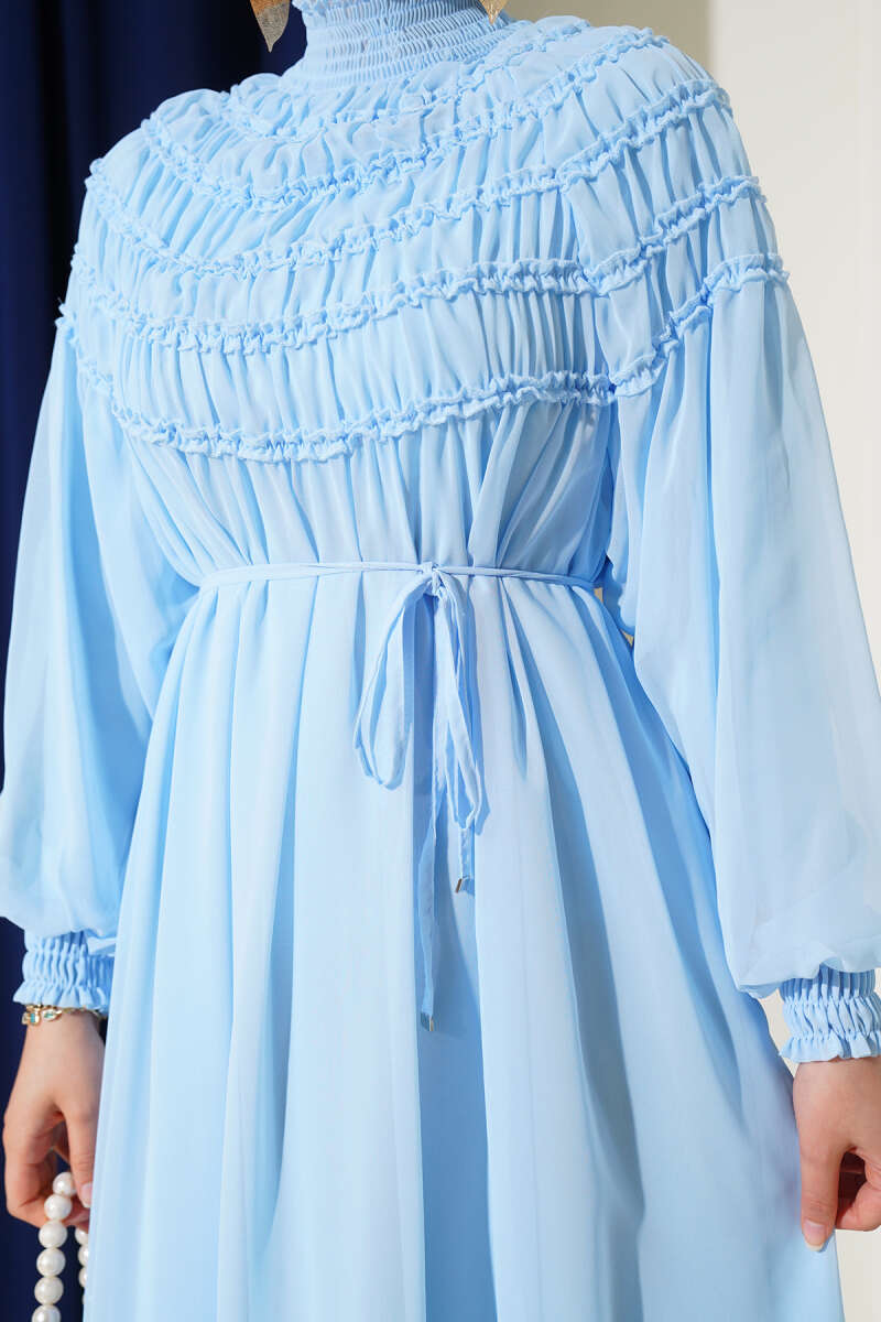 Bel Taşlı Pelerinli Abiye Elbise Lacivert