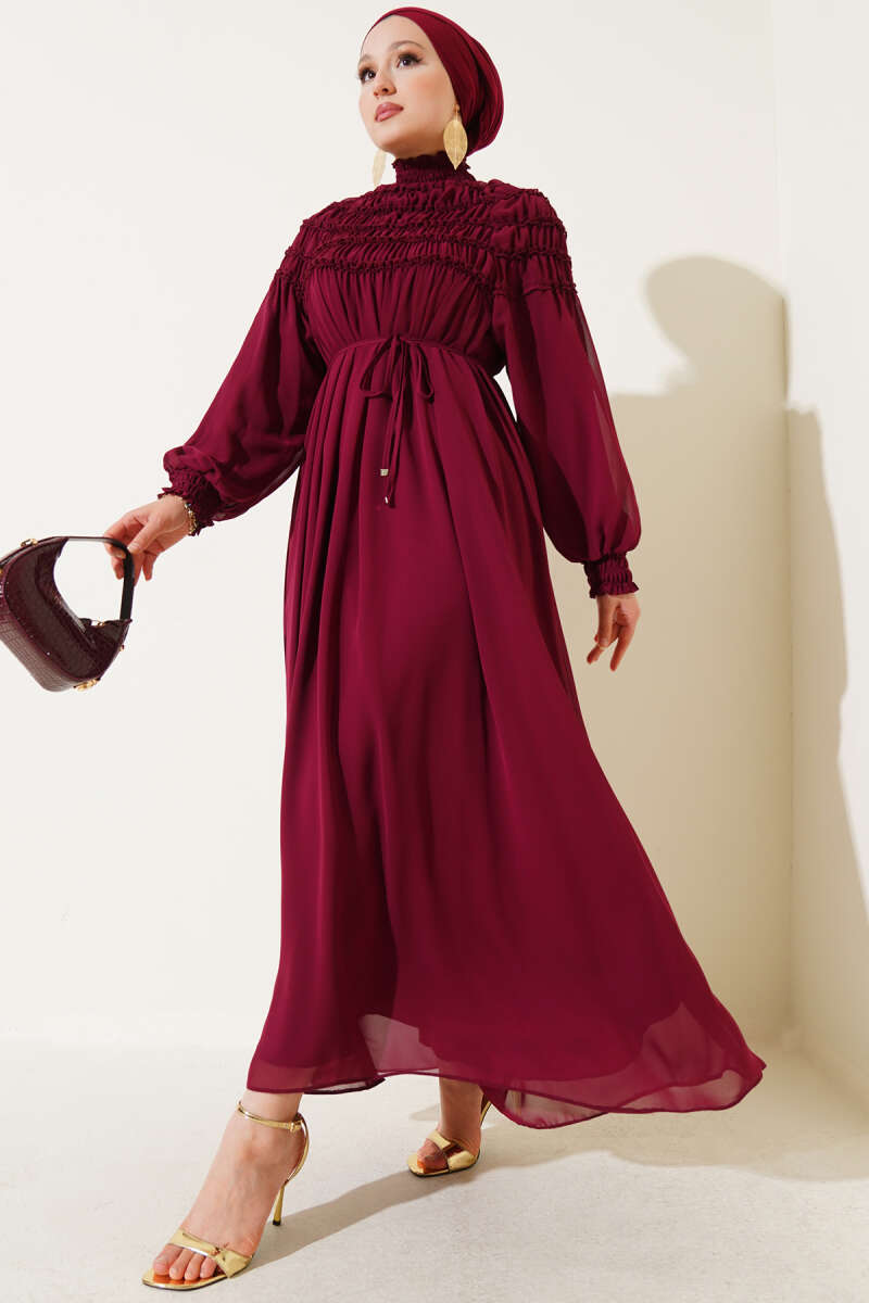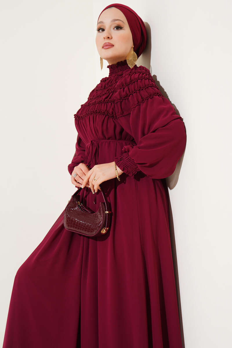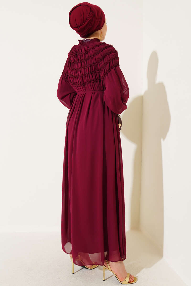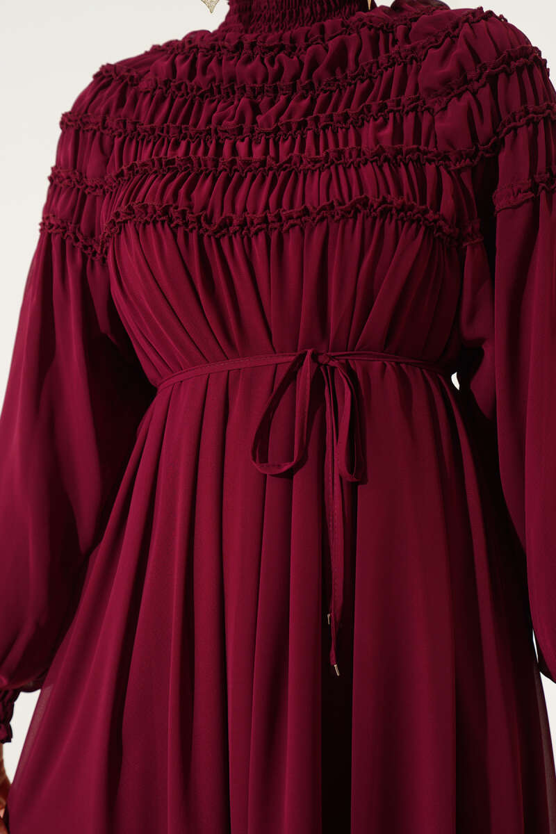 Pelerin Detaylı Pileli Triko Elbise Bordo