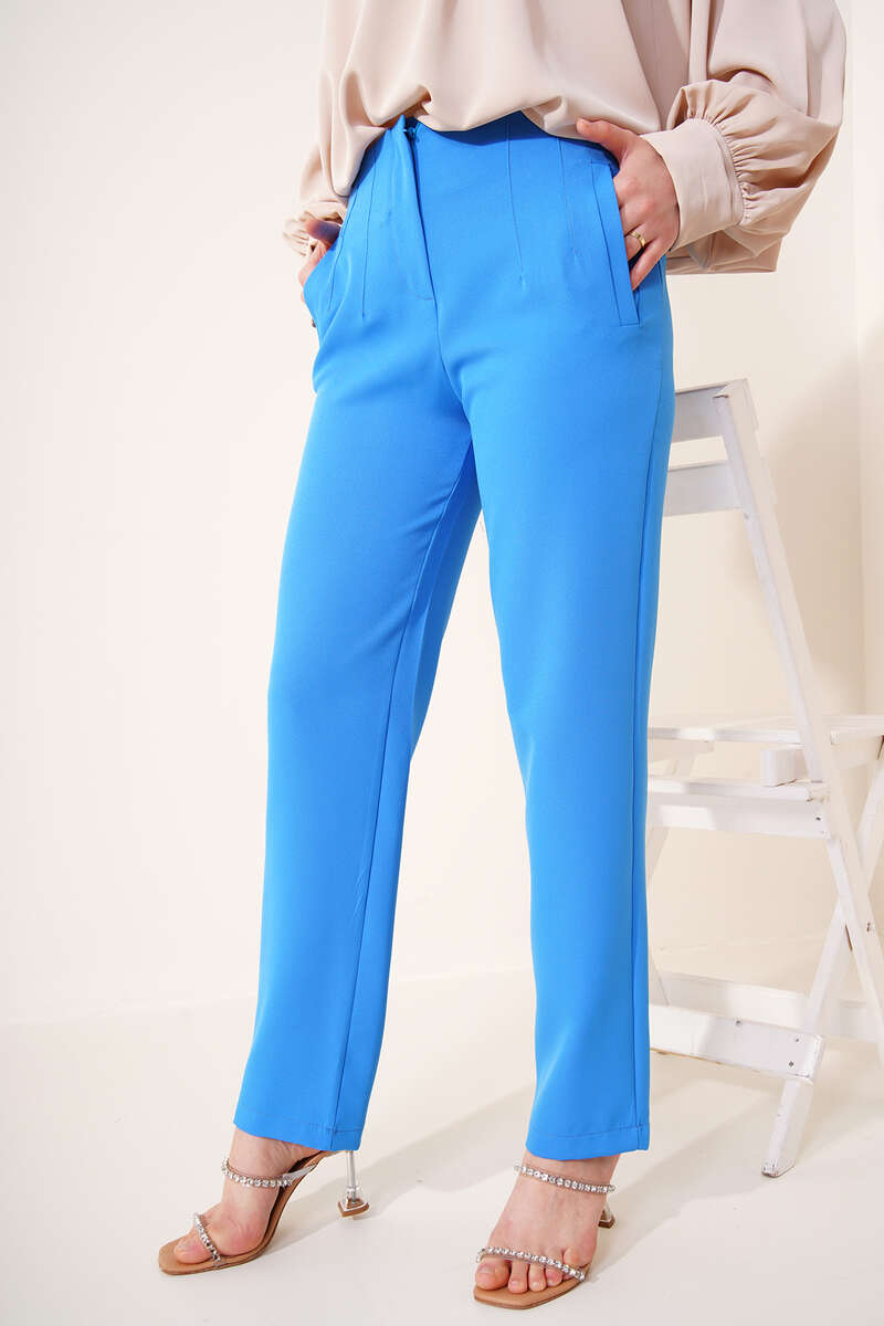 Pantolonumuz yeni sezon modeldir. Yüksel bel olan pantolonumuz önden fermuarlıdır. Yanlarında bulunan iki adet cebi aktif olarak kullanılabilmektedir. Dar paçadır.